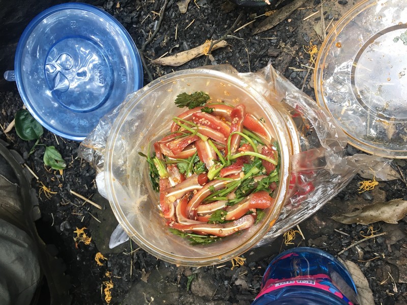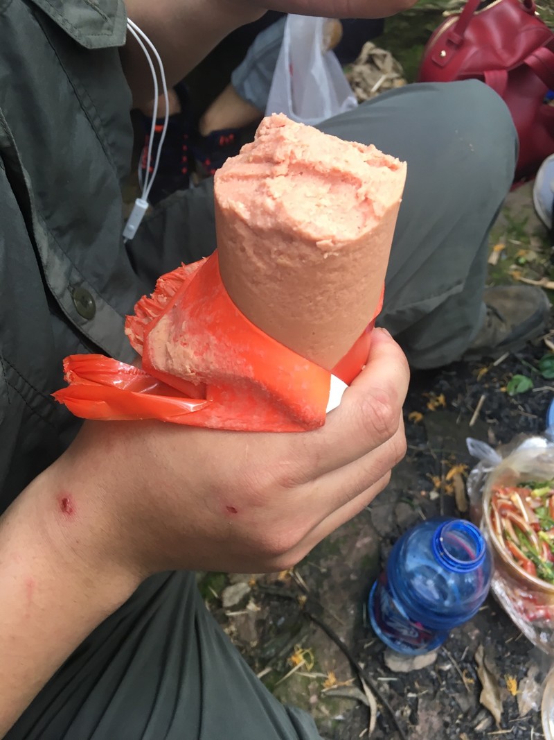 臭美完毕,接下来便是此行每个人都最期待的路餐时刻。 不认识我们的人,一定会以为我们相识很久。每个人都翻出了各式各样的物资,展开了一场美食交流会,最气派的是我们的兵哥哥,两捆胳膊粗细的火腿,还有猪耳朵、夫妻肺片,亲,你是来腐.败游的么。 通过这场美食盛宴,我们的嫩驴们都总结出了经验,果然还得咸的软的食材有市场,那些带着饼干的小伙伴,看到你们哭着喊着分享给大家,还遭到大家一致的嫌弃,我们大家一起可耻的笑了。