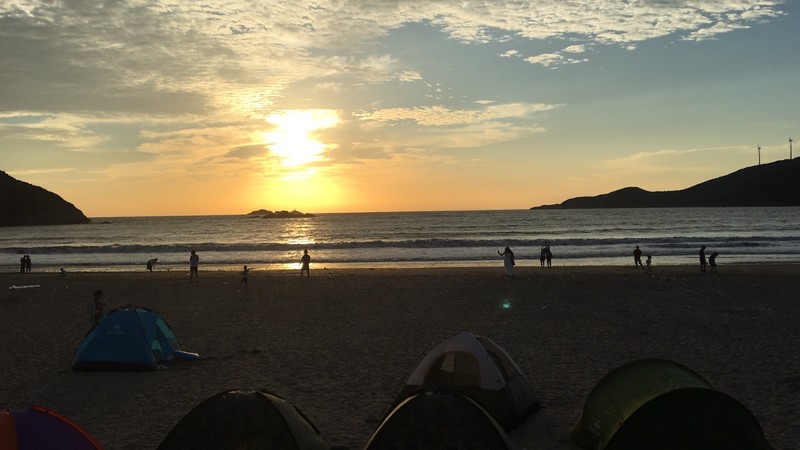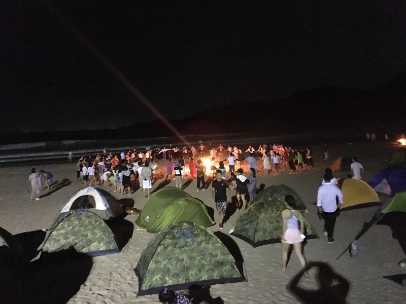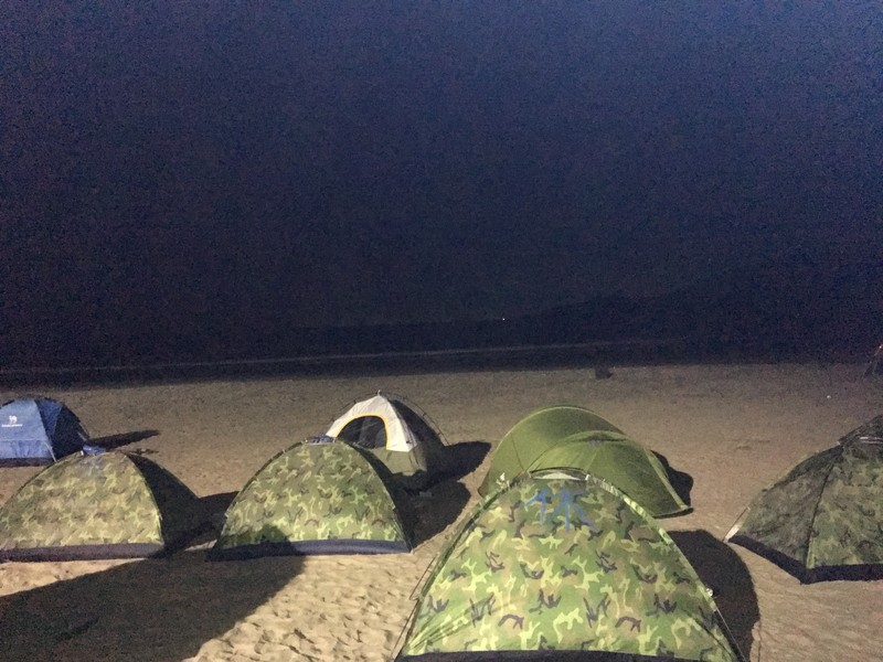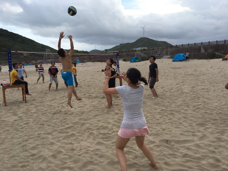 到了岛上以后,大家购票后徒步前往露营点,同心协力支起帐篷后,开始了丰富的沙滩游戏,有沙滩摩托,沙滩排球,堆沙子,爱美的姑娘们摆起了各种造型。
