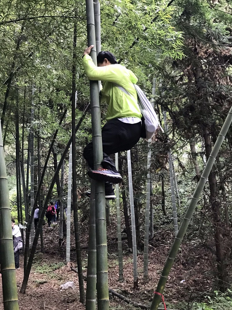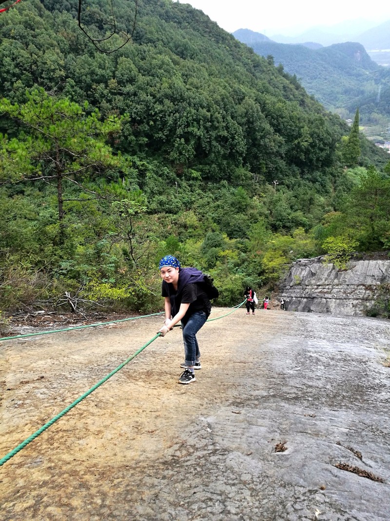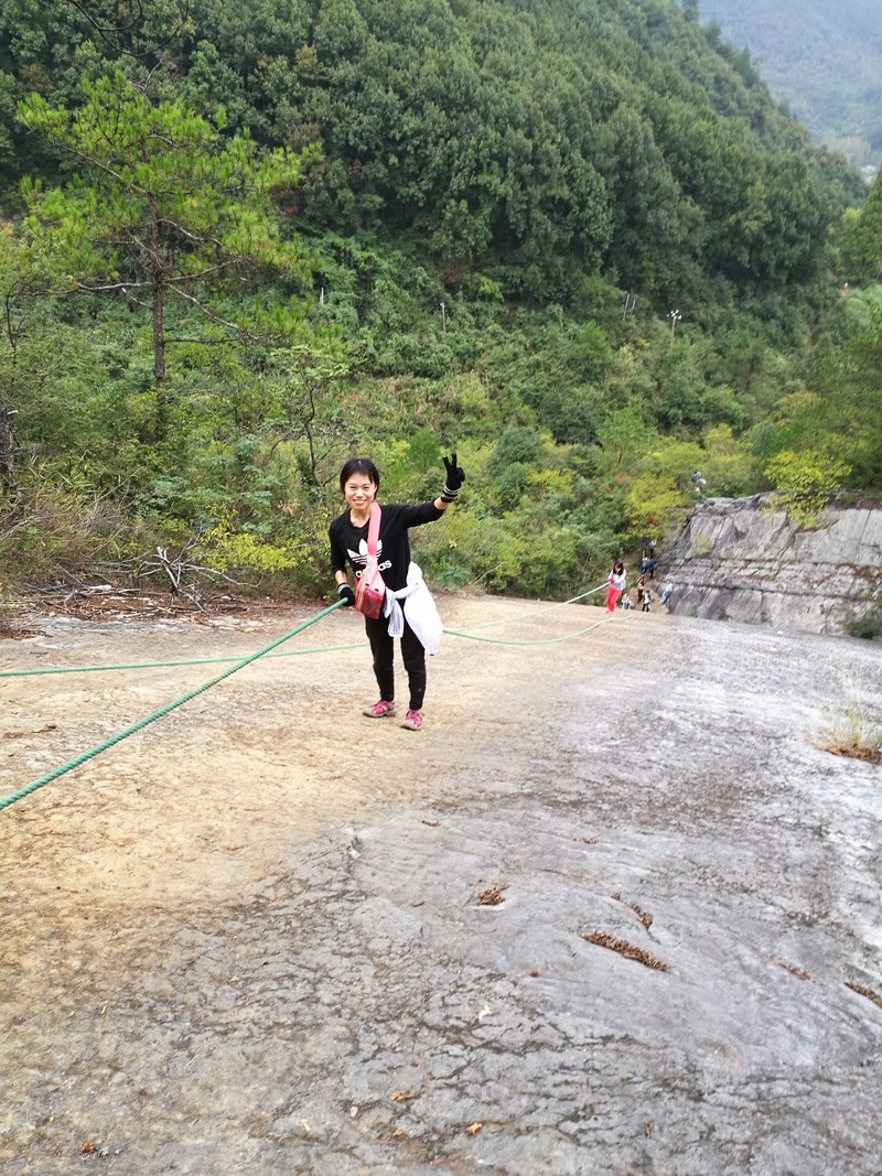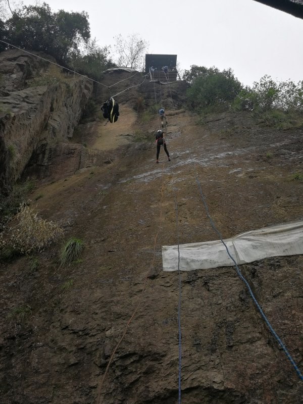 2017年10月2号,星期一,天气阴转雨转阴。十一是一个堵车极其严重节日,清晨,我们团队要比往常提前半个小时出发,前往纪龙山,期盼不会堵车,不过还是堵了。所以,即使这样,大家的行程也要退后。不过还算顺利,一点半左右我们来到了我们定好的农家,吃了饭打算我们第一天的速降之旅。 开到山上,我们把装备都安放民宿老板仓库里。跟随民宿负责人何老板来到我们速降地点,行程也就十几分钟路程,来到我们速降地点。这是我第二次玩速降了,看到队员都有些害怕,所以,我冲在了第一个上,给大家打个样。这次上次的动作更娴熟了。很快我就安全到达地面,并且告诉大家很安全。让大家对这种恐惧减少一些。不过很给力,接下来,我们的女大巴司机也顺着下来,我又告诉大家很安全。陆续男生先下,随后,女生也鼓着勇气下来,下来我都问他们的感受,他们都感觉很刺激,很安全,很好玩之类的话。下面就是大家速降的装逼精彩瞬间: