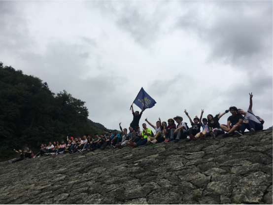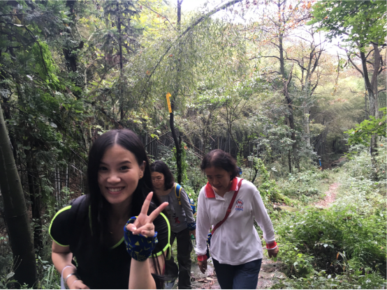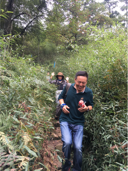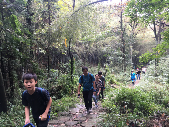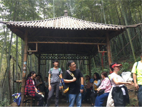经过小伙伴们一起努力,我们终于登顶啦,凉亭稍作休息我们继续出发。