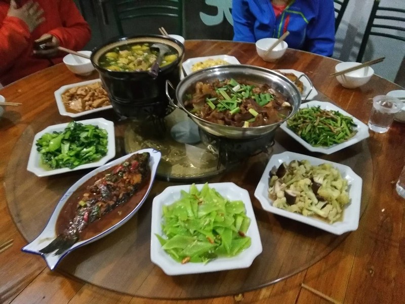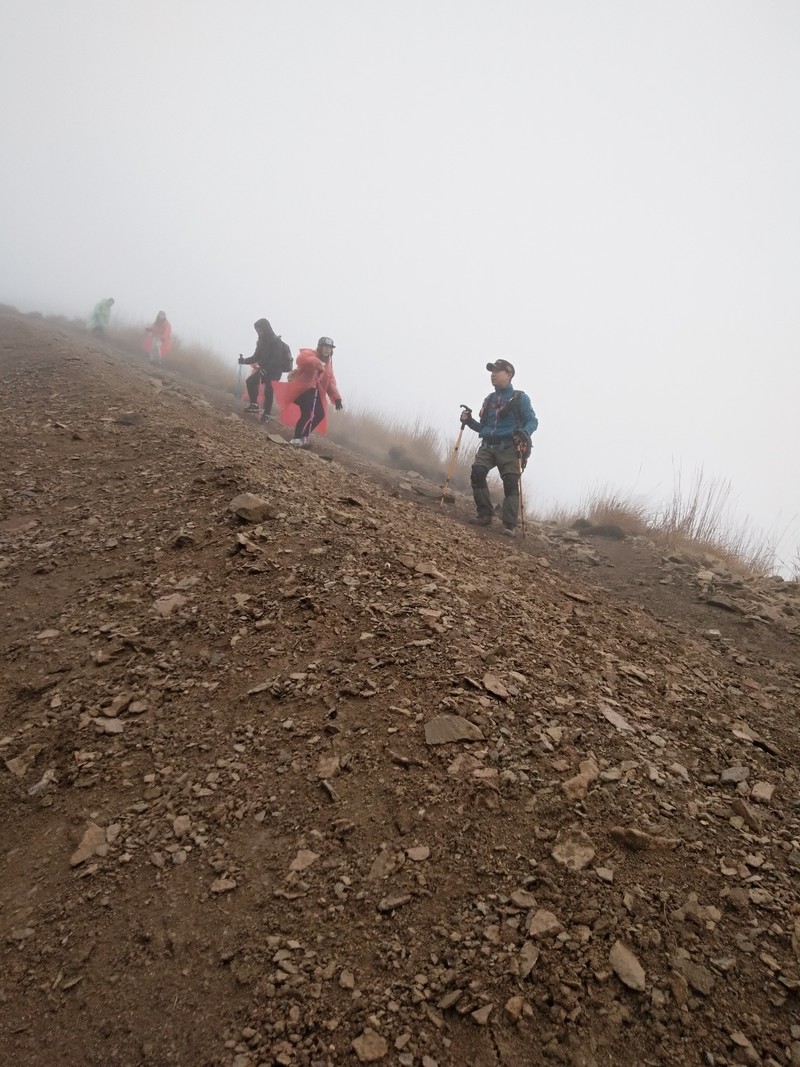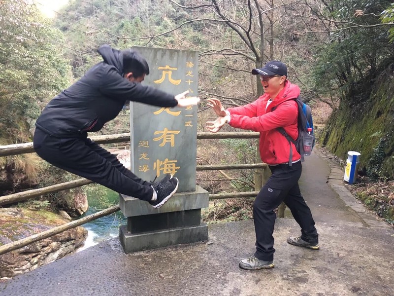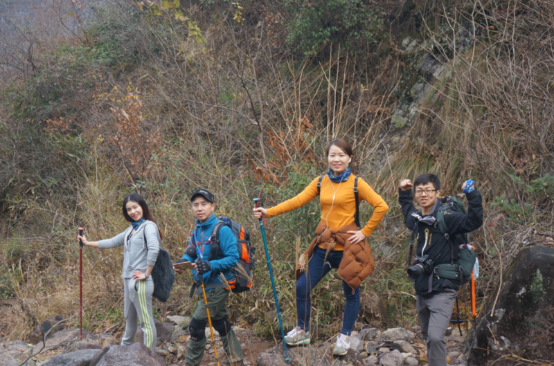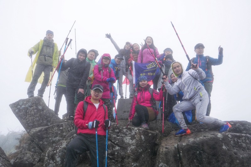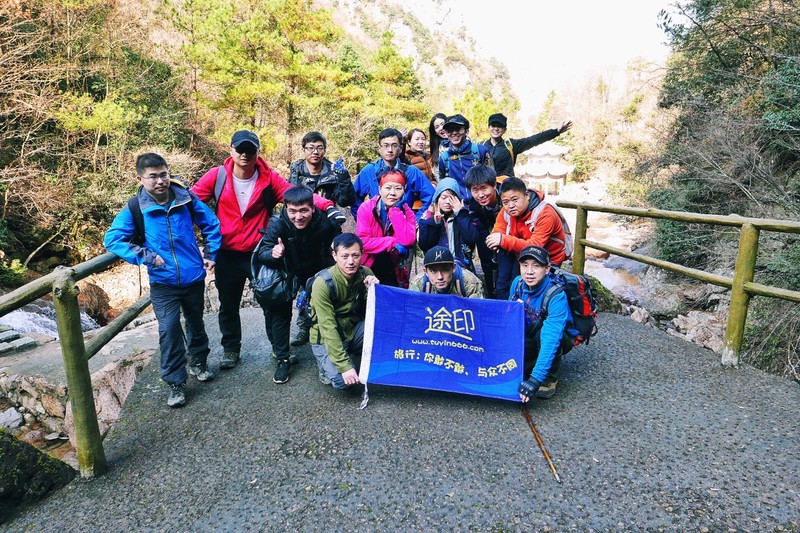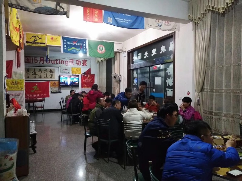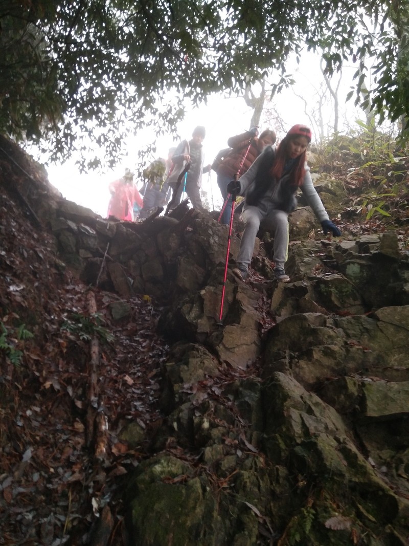 来到了山顶的平台,时间已是正午,大家席地而坐享用辛苦背上山的美食。天公不作美,山顶冷风肆虐,温度低到结冰。这回彻底在清凉峰上感受了一回清凉……