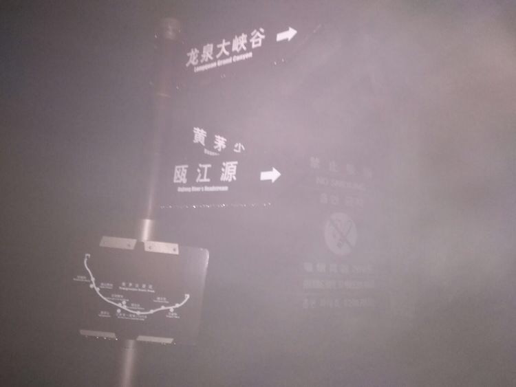 来到山顶,冷风吹来遍体冰凉,天已经完全黑了,该结束一天的冬泳了,卸包的时候才发现右手不知道那只筋在摔下独木桥的时候给扭了,有点不听使唤,换完衣服坐下才知道pp也不能着地了,第一次萌生了扎营的想法。但望前路坡度较缓,咬牙再坚持。大约一公里后见到了这个景区路标,旁边是景区的柏油路,正常的思维一队轻装的在不熟悉的地应该撤往景区游客中心,而‘坑’领队还带着这个队伍往黄毛尖的方向走,最后走上去烧香岩的上山道,《这是我下来后问了我的领队才知道》走了一公里多发现是上升,感觉不对,和他们打声招呼独自往回撤,这是候的想法是到三岔路的小石房子扎营算了,到了三叉路有点清醒立马和自己领队挂了电话,才知道这地离景区大门不过几百米,而早先往回撤的刚子俩人已近把车约到了,赶紧往景区大门赶去,到了车上和他们汇合,温暖迎面扑来,重回人间。
