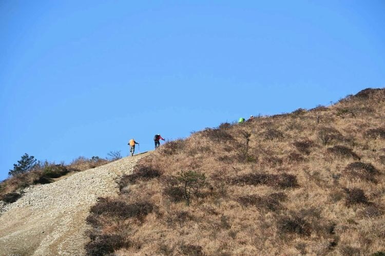 今天阳光灿烂,天气不错,我扭着受伤的pp,手连登山杖都那不动了,以散步的龟速挪动。和前面队友的距离是手台都联系不上的位置。这一路风景不错,可我心情不妙,没拍多少照片,下面发的基本都是同队驴友的美片。