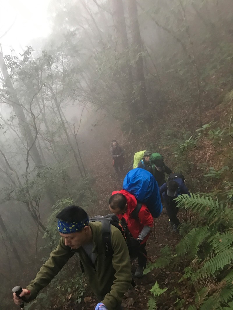这一天的前半段,我们都在不断的登高、登高、再登高。千八的上山本就消耗巨大,然老天爷觉得我们实力雄厚,非得在此基础上落下福雨,增加我们登山的难度,我(文明用语)。