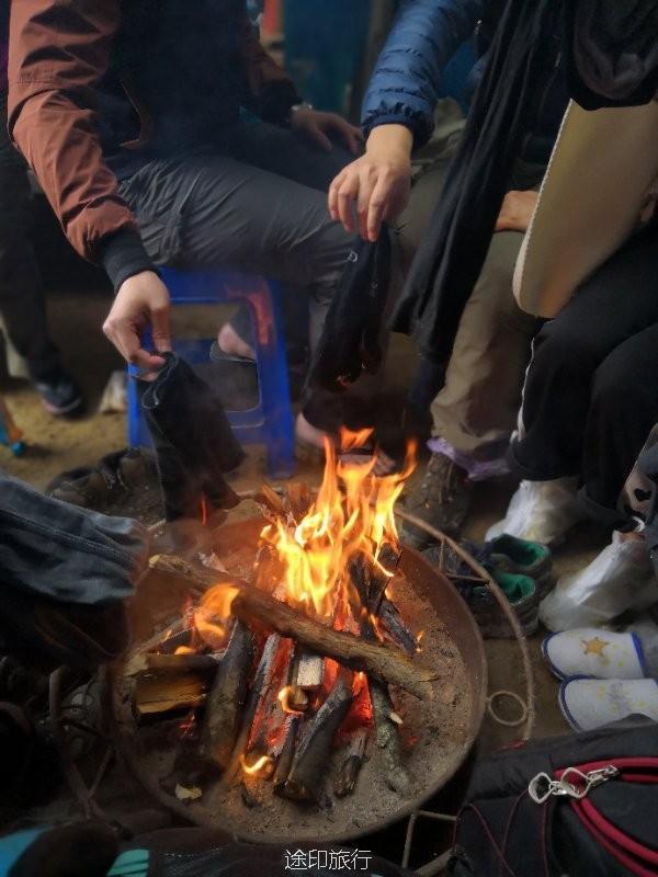 冒着雨在下午5点左右,我们终于全部抵达今天的目的地百丈岭。住宿条件非常有限,也没有人去想了,领队让老板弄些火盆,大家围坐在一起烘干衣服,是乎已经忘记了一路的困难。不一会儿就开饭了,那几个重装的伙伴又开始做他们晚餐,有培根,有酒,有面条等,好丰富。