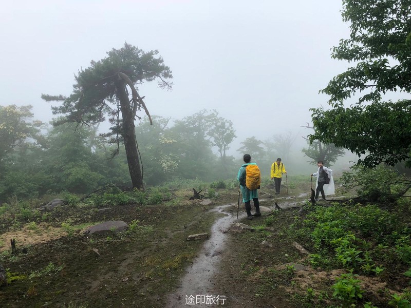 到达山顶,又突然下起了雨。我们继续前行,路上美景相伴。