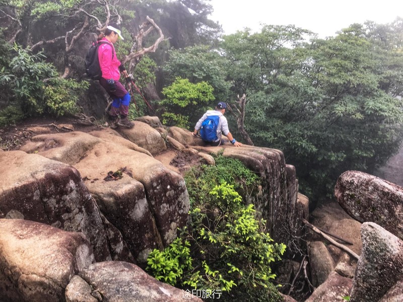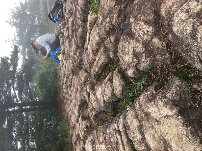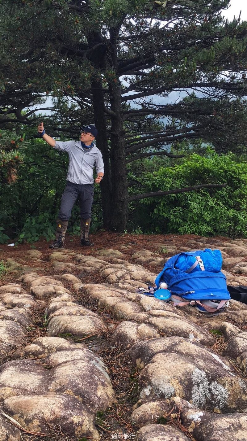 后面的路程,就是第三尖节理峰,大石头拦路,开始爬上爬下。队伍里的大叔石头哥,老当益壮,不坠青云之志。
