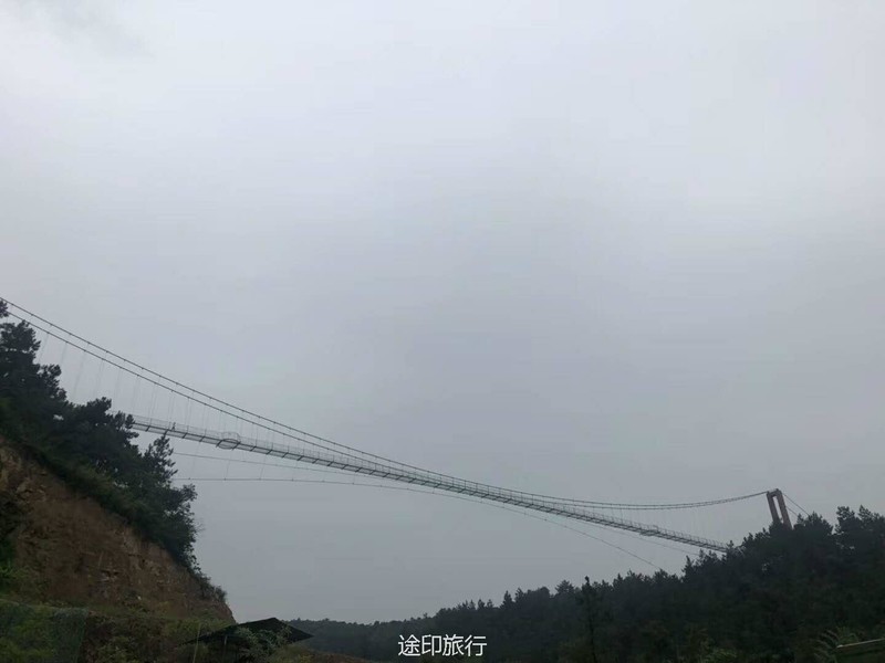 今天最重头戏最吸引大家前来的就是网红玻璃吊桥了,在下面远远望去就已经让人兴奋,小伙伴们的激情完全没有被小雨打消。