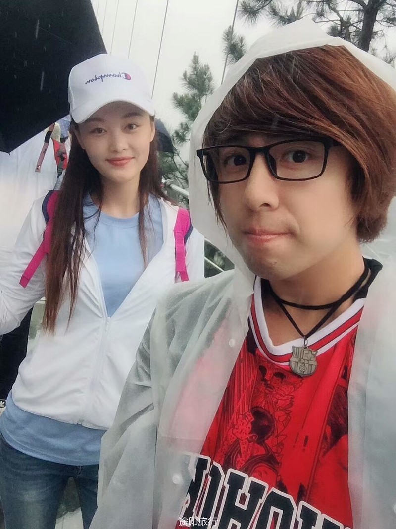 比预期更早地抵达了基地,天公不作美,原本预报不下雨地天气下起了雾蒙蒙的小雨。有一些队员准备不充分没有携带雨具,我去基地服务窗口给大家都领了一些一次性雨披,于是集体照里,大家都是蓝血人的形象。