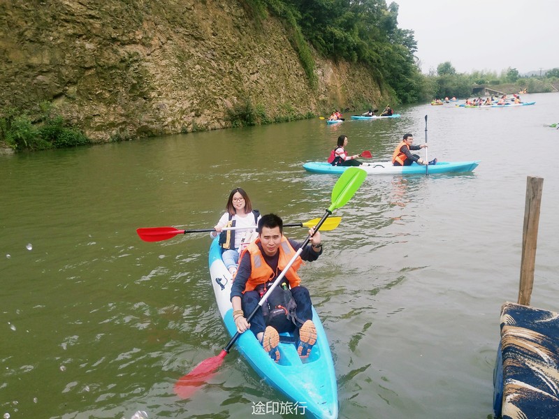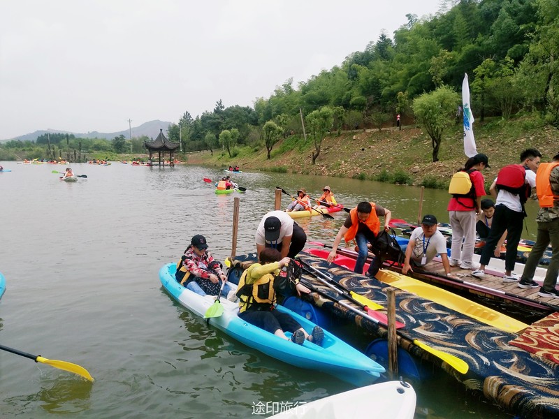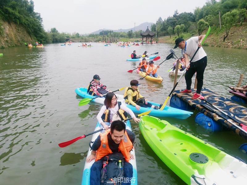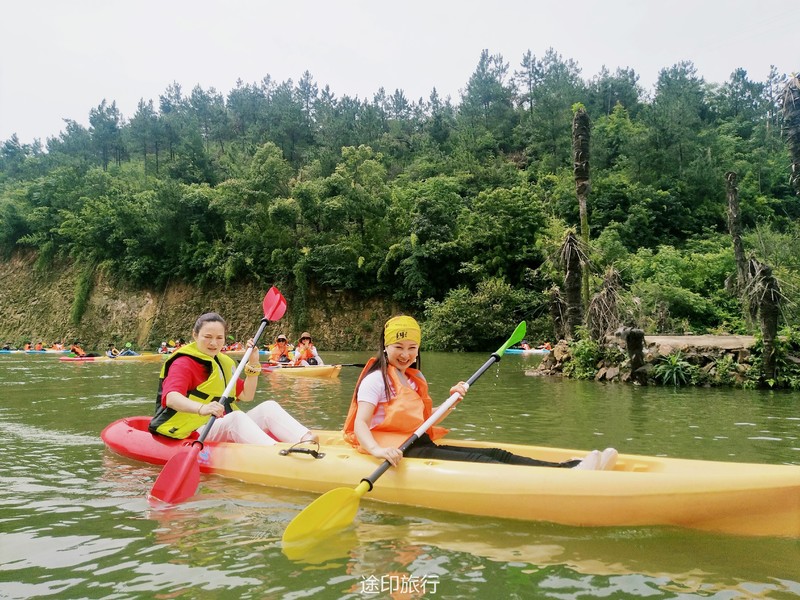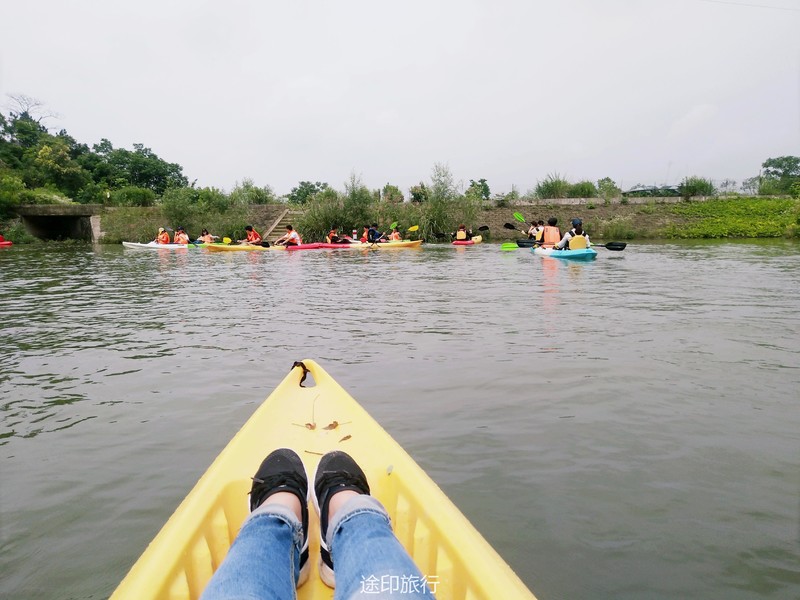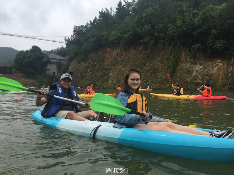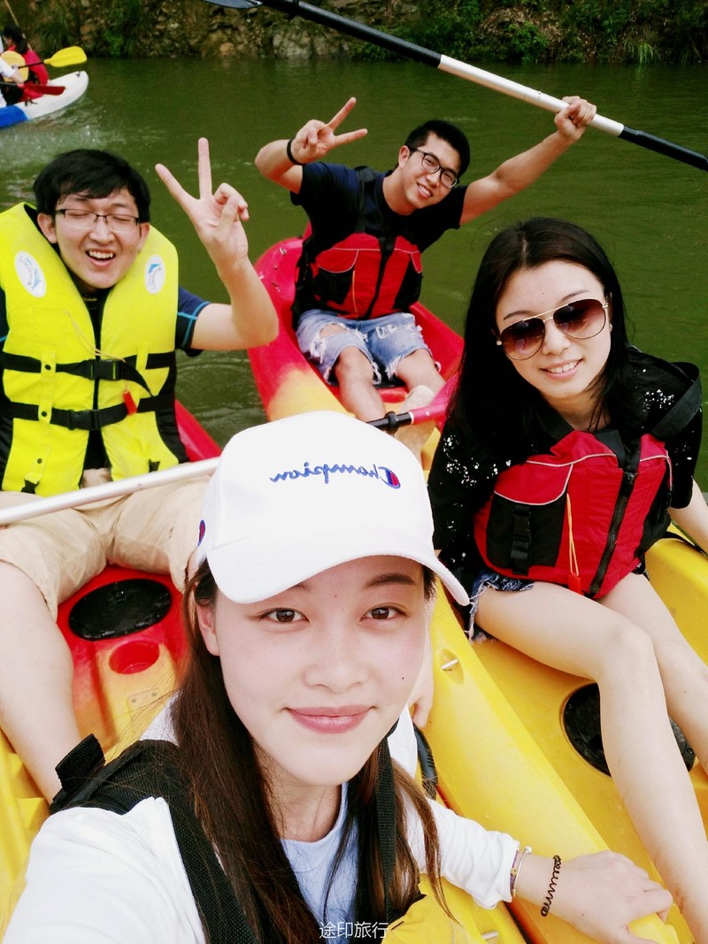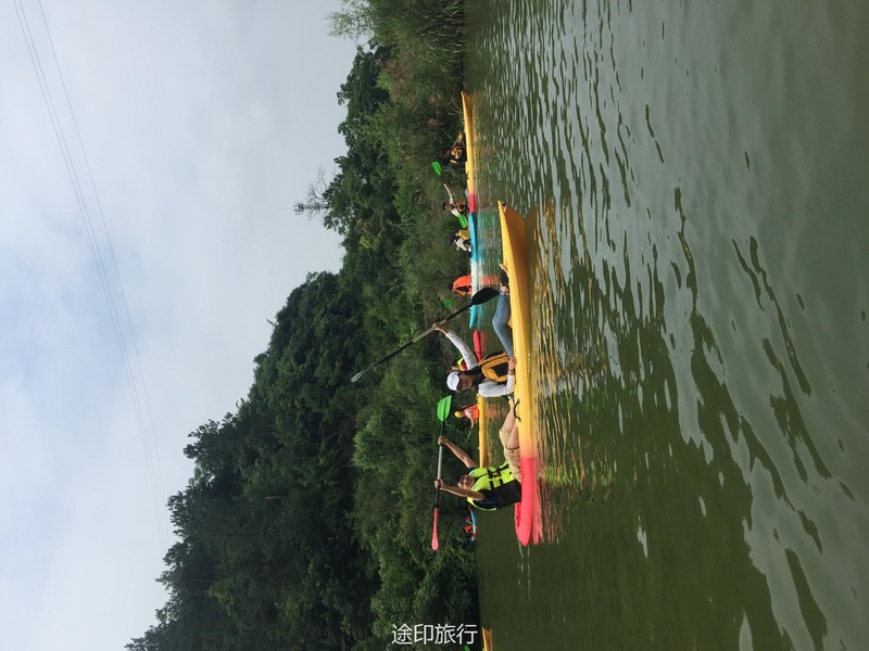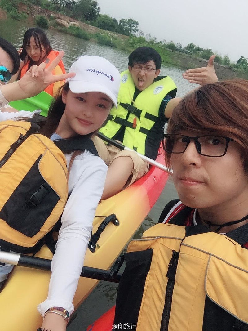 同行的人三三两两结伴而下,湖最里面的区域是混战区,会比较容易被其他打水仗的船只误伤。还看到有一个国际友人的队伍也来玩,玩皮划艇嗨得不行,一会加速一会混战。