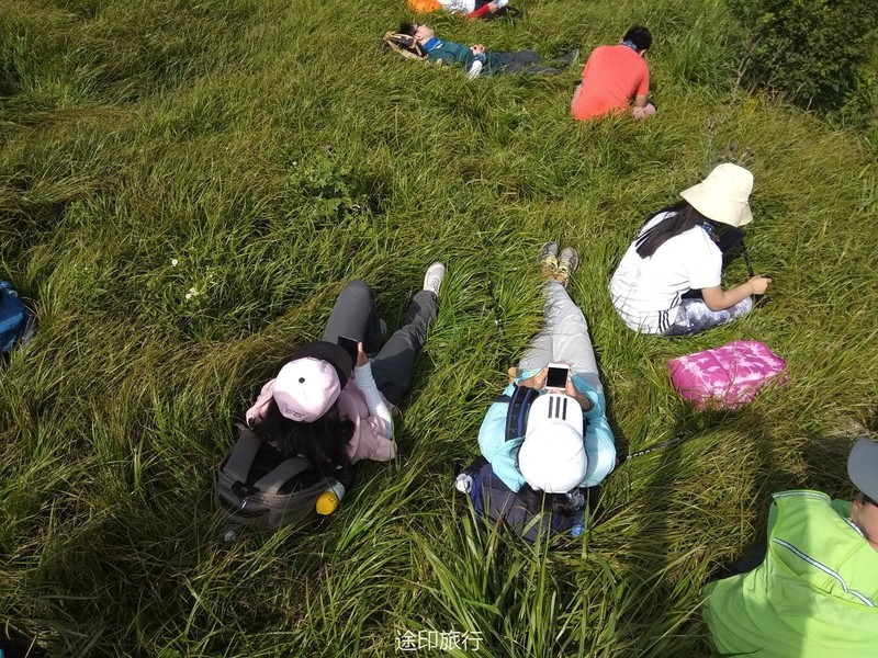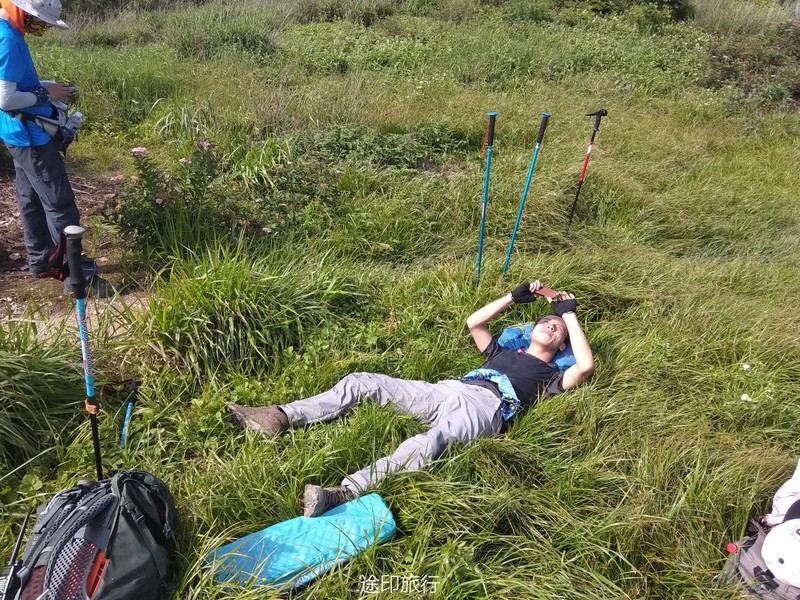 到了下午三点多,就有队员问我还有多久能到,我说看我们速度,估计五点多能就到,前队走得太快,来到一片草地休息,刚好一个风口,还蛮凉快。
