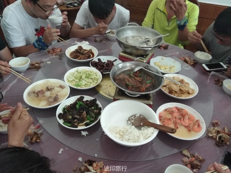 饭,在车上就有队员说在山上的用餐太简单了,下山一定要吃些好的。山下的菜还不错。就这样结束了两天的三尖挑战之行。三尖虐吗?对于那些平时不怎么运动的人来说,有点虐。全程25公里左右,中间没有补结。那对于那些平时爱好运动的人来说就是小菜一碟。(小乔第一天晚上还到入找人聊天,已经50多岁的老户外杨哥,还有那爱好越野跑的健壮。)我想大多数人,在山上经历一次次想放弃的念头,但是只要进了山,就没有选择,只能往前。(除非你是受伤很严重,根本没法前进)。走这条线路,很多内心挣轧慢慢的平静下来。