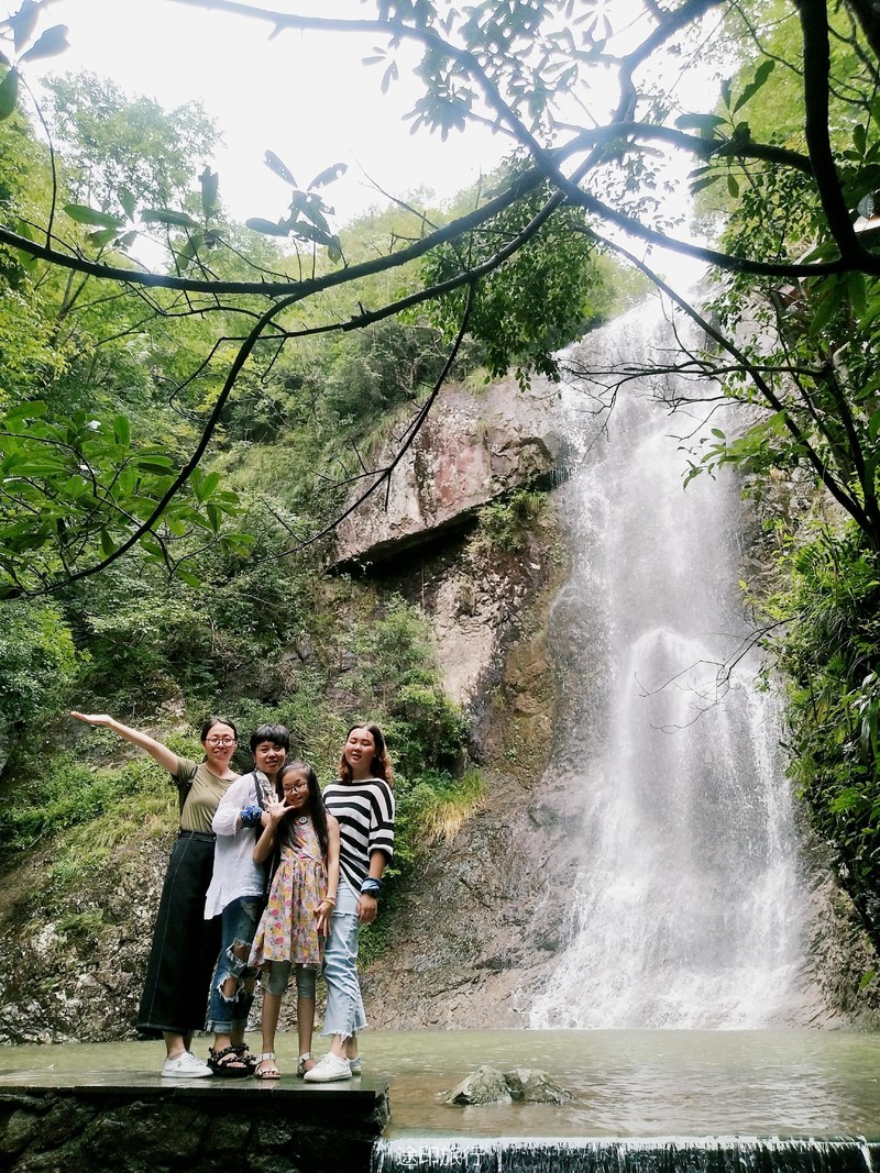 在公园门前拍完集体照,便慢悠悠踩着景区里的台阶上山,景区总体不大,一共两个半小时就能走完一圈。台阶路两旁树木茂盛,加上下过了雨空气中的湿度比较大,树木的清香加上雨水甘甜的味道,让人神清气爽,忍不住深呼吸两口。
