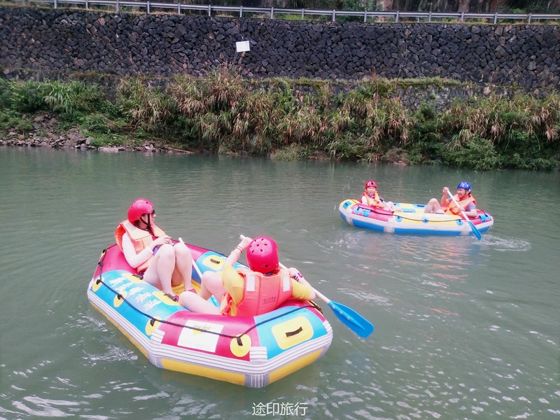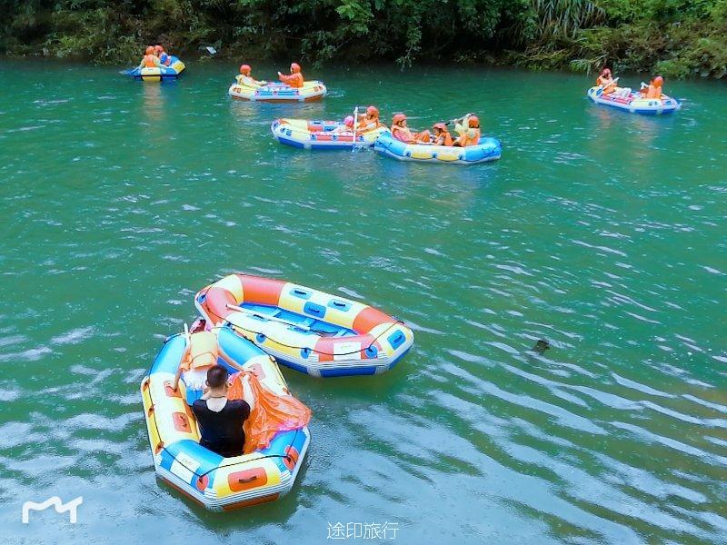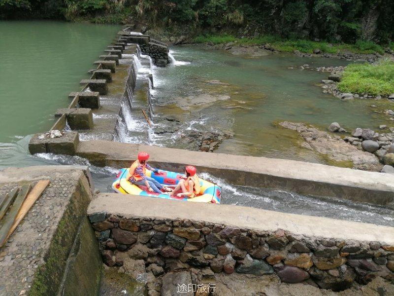 这个漂流总体不算刺激,中途多为平静的河道较多,在几个落差节点设置了滑道,能够体验落差带来的刺激感觉。