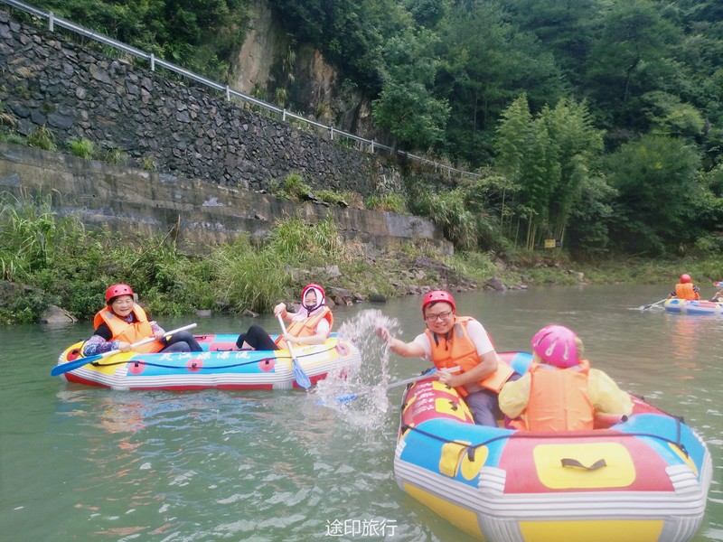 吃完中饭,坐了一小段车,去玩漂流。灵江源漂流今年新修了最后一段玻璃滑道,可能是受抖音影响吧,能有幸赶在第一个夏日去体验一把也是很不错的。