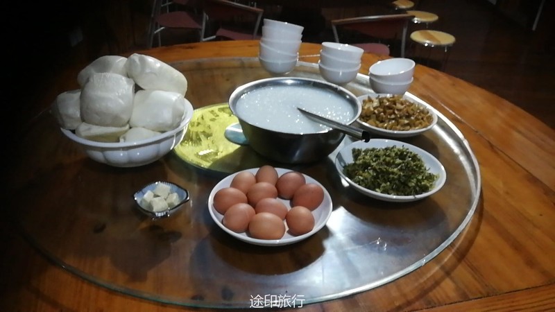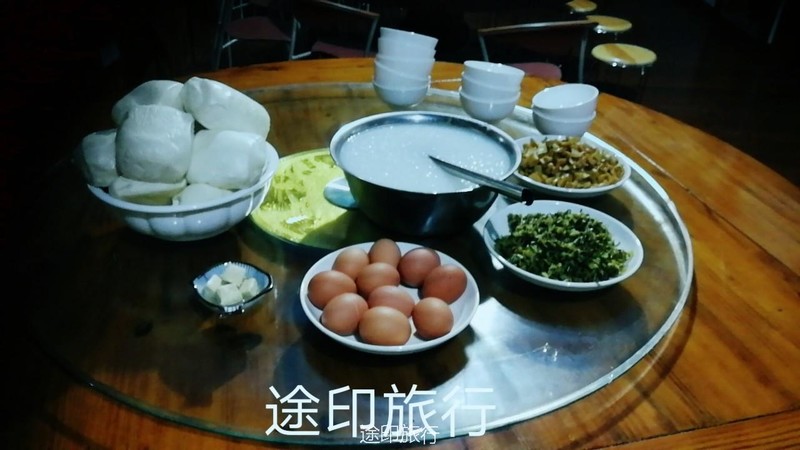你没看错,就是堵 凌晨十二点半左右,我们到达了农家乐老陈家,大家洗漱碎觉,因为第二天四点就要起床,4点半吃早餐 5点准时出发 早饭准备好喽 然后挨个敲门吃早饭 大家肯定恨死我了呢