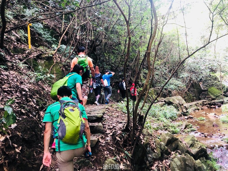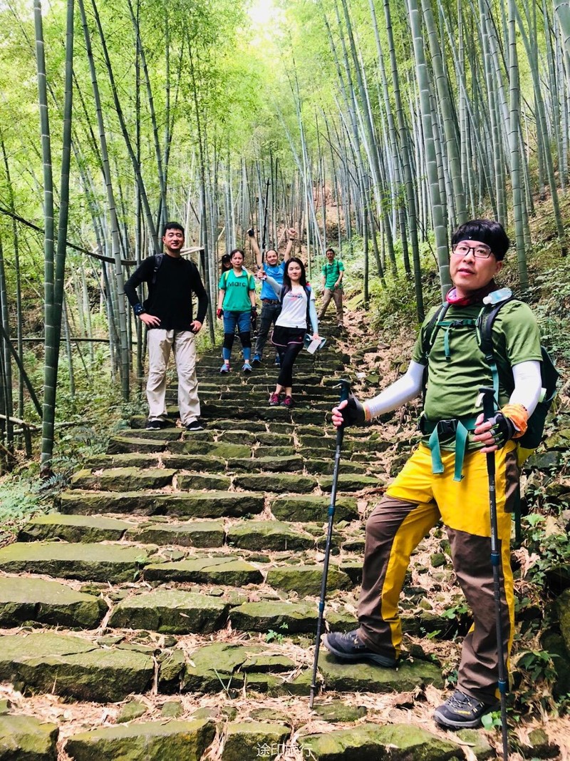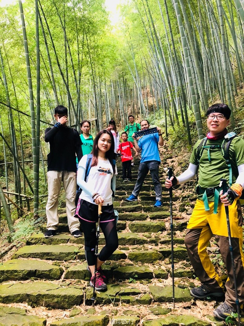 继续出发,出了茶园,后面的路就是拾级而下的台阶了,因为时间还早,大家一边行走,一边拍照,古道上留下了欢乐的足迹。