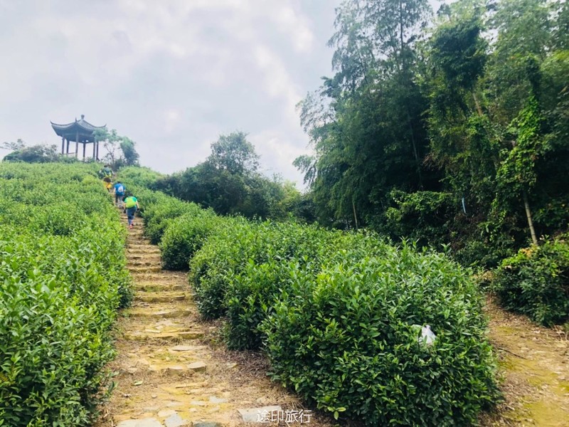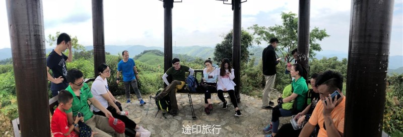终于到达此行的最高点,醉茗亭,名字很有诗意。亭子建立在一片茶园之间,清风徐来,满庭茶香,名副其实。 在这里,大家纷纷拿出准备好的午餐,互相分享着美食和见闻,喜乐融融。