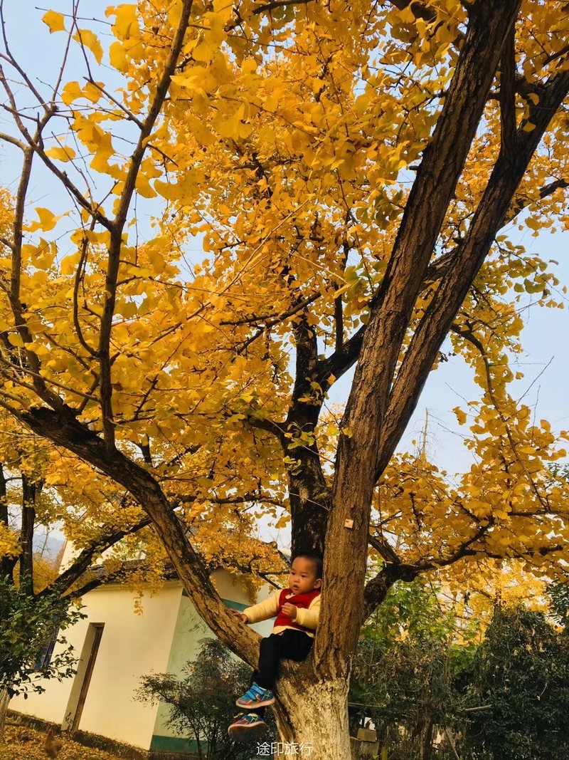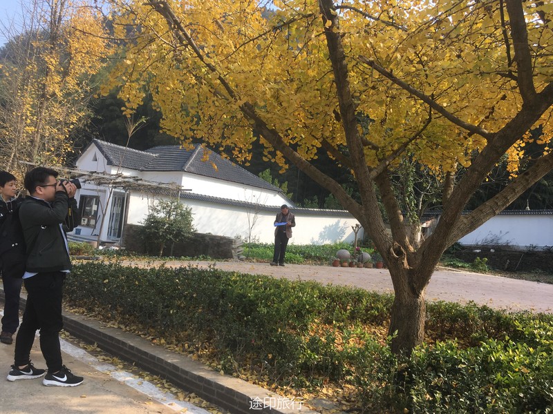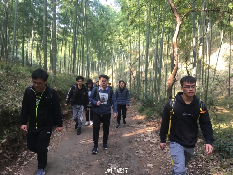 八都岕银杏长廊” 走遍天下景,难见银杏林”。3万余株原生银杏树绵延12.5公里,入得其中,重重叠叠山,曲曲弯弯路,叮叮咚咚泉,尽显“原、野、奇"风姿,构成了一道罕见的风景线。3000多株百年以上的银杏树,铁干虬枝,高大挺拔,茂密的树叶挡住骄阳,圆嘟嘟的银杏果挂满枝头,圆的似梅核,尖的像佛手,应有尽有。漫步在林间古老的卵石小道, 驻足赏景,眼前只见树杆不见树枝,都是没嫁接的原生树,自然天成。 在金秋之季,没有看过金黄的银杏林就像吃了没有盐的菜,索然无味! 好在,有35个识货的小伙伴抓住了秋天的尾巴跟我们一起走进了银杏林。 早上7点大家准时集合在曹杨路顺利出发,因为大家起的比较早,很多小伙伴一上车就开始休息了 ,大概10点半左右我们到达本次徒步的起点 天公作美,阳光明媚,大家热情洋溢的开始了今天的旅程