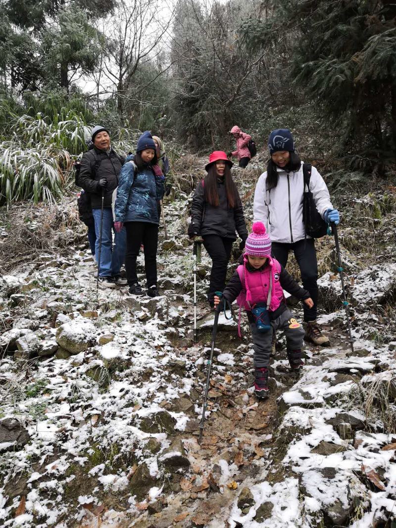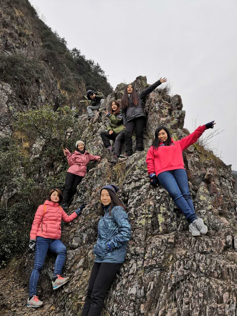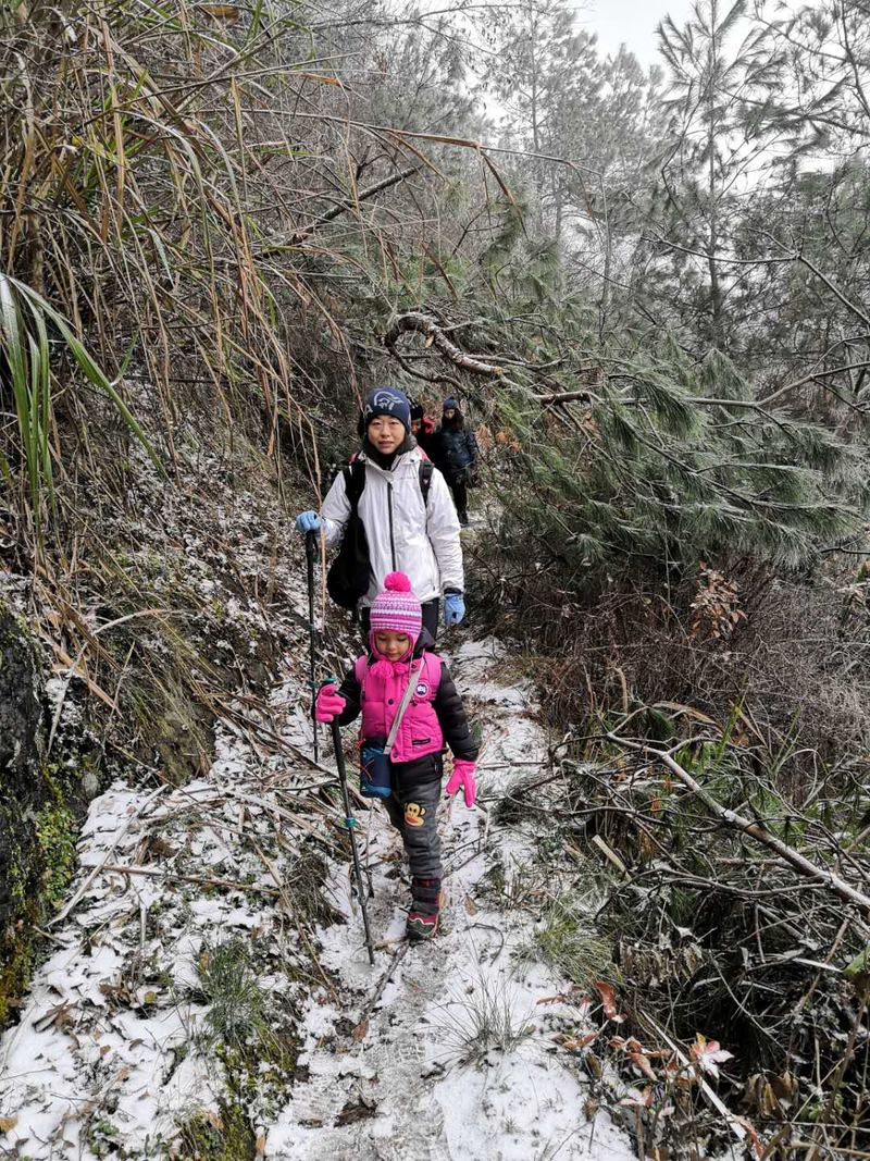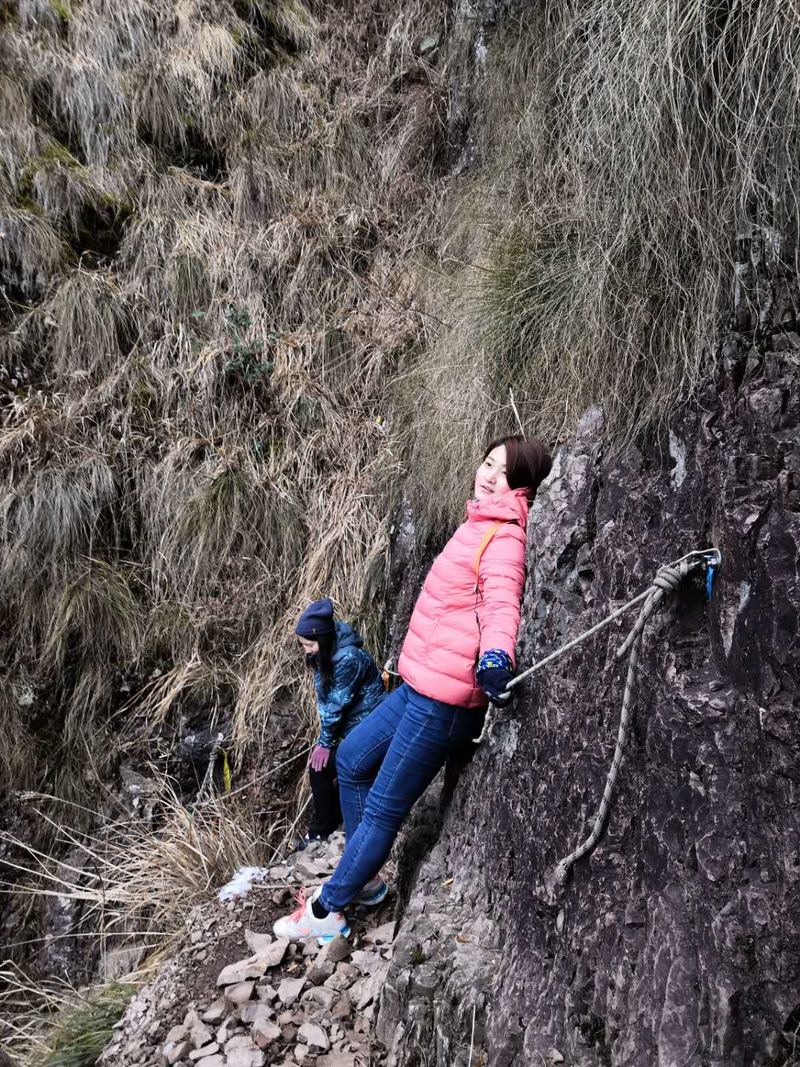 巾帼不让须眉,大家一起努力攀登上了结冰的悬崖峭壁,你们是最棒的