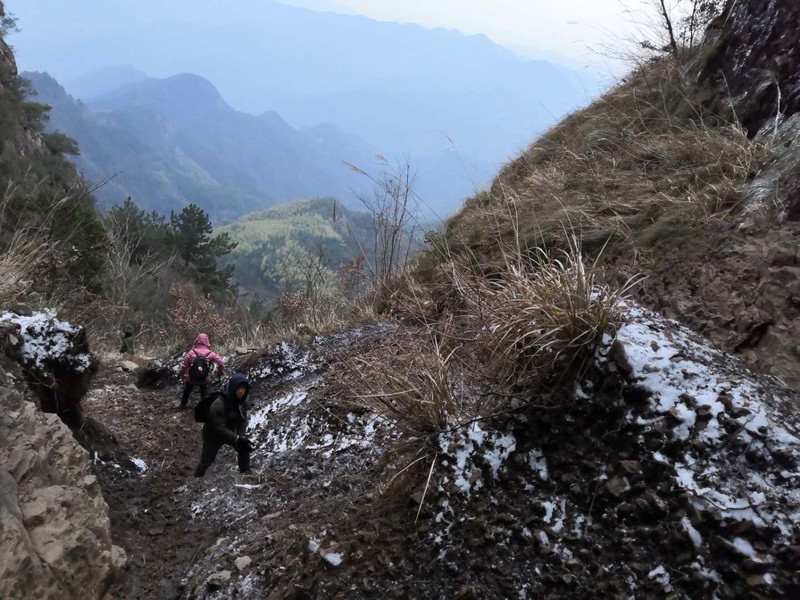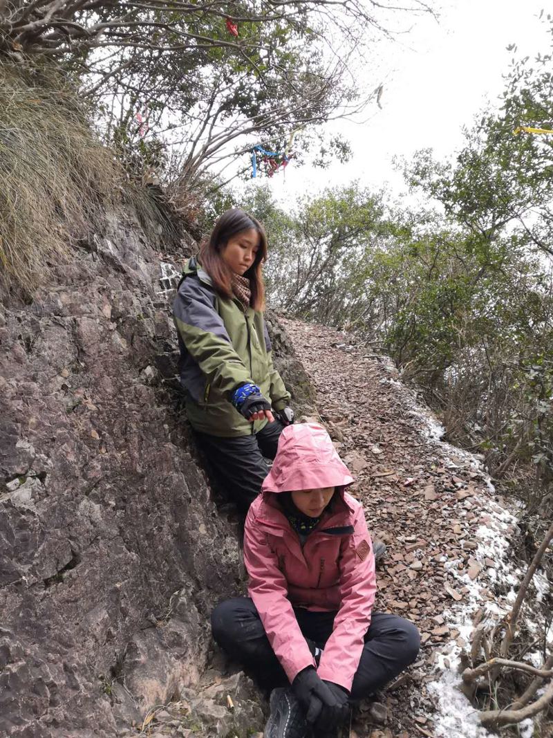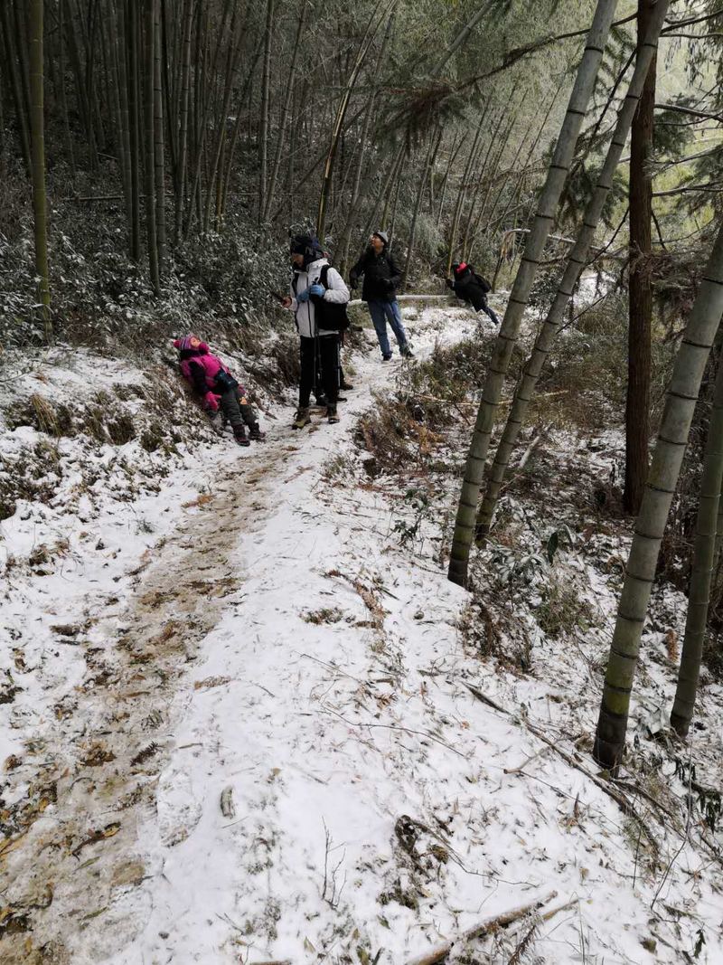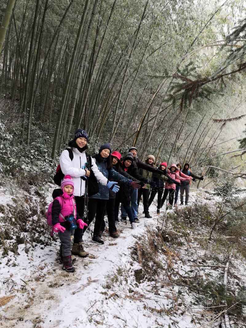 巾帼不让须眉,大家一起努力攀登上了结冰的悬崖峭壁,你们是最棒的