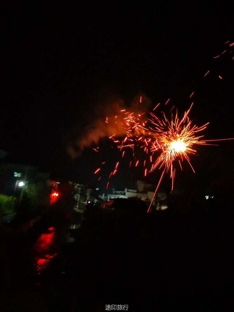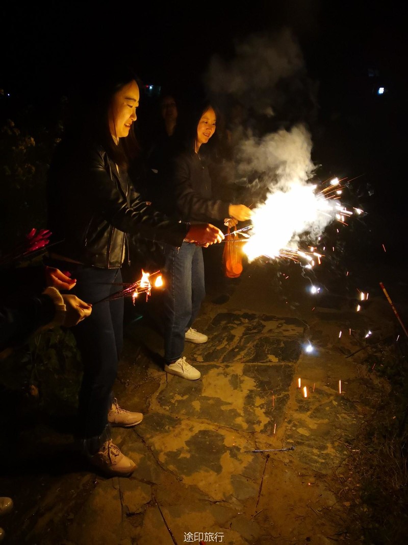 我们一起去扫荡了村口的小卖部,买了手拿的烟花和放在地上的烟花(店家说有36发)当然了还有仙女棒!大家一起走到村口,艰难的放起了烟花,当天由于风大,烟花总是点了就熄了。还好团里有聪明人,点上已经放完的烟花,直接点引线!一下子就着了!在上海放不了的烟花,我们在婺源放!