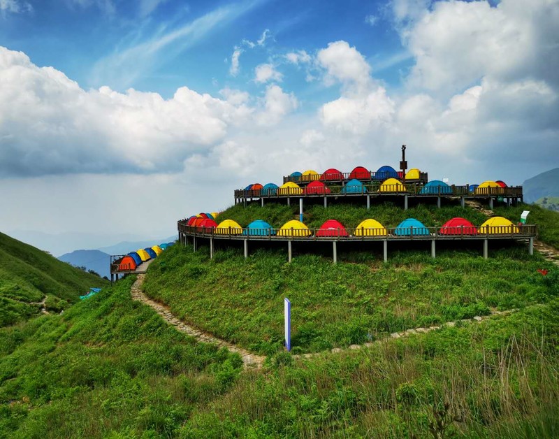 穿越途中一路花繁叶茂、流水潺潺、高山草甸之上五颜六色的帐篷和满眼的绿意交相辉映,翻滚的云海和壮丽的日出让人如入仙境。