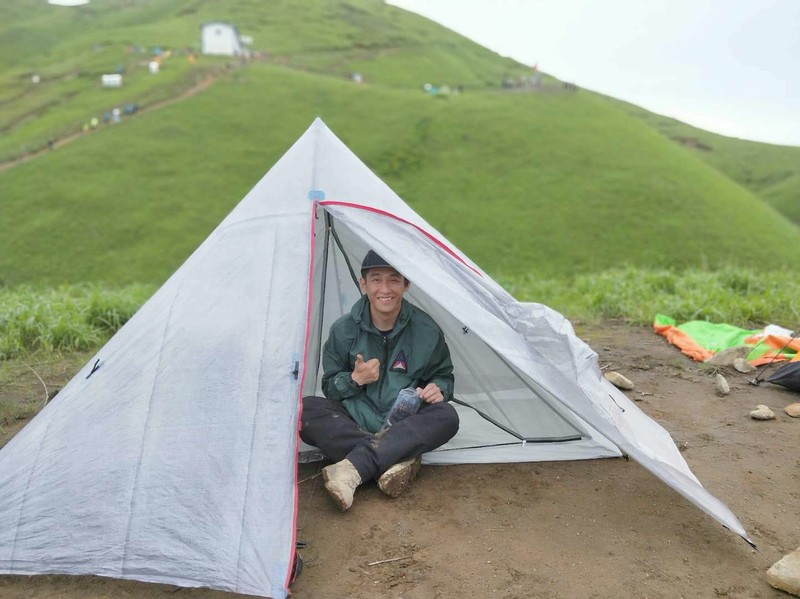 中午12点左右大家开始享用自己带来的路餐,这位大哥带了自热米饭,在山上能吃上一碗白米饭真的是满足啊