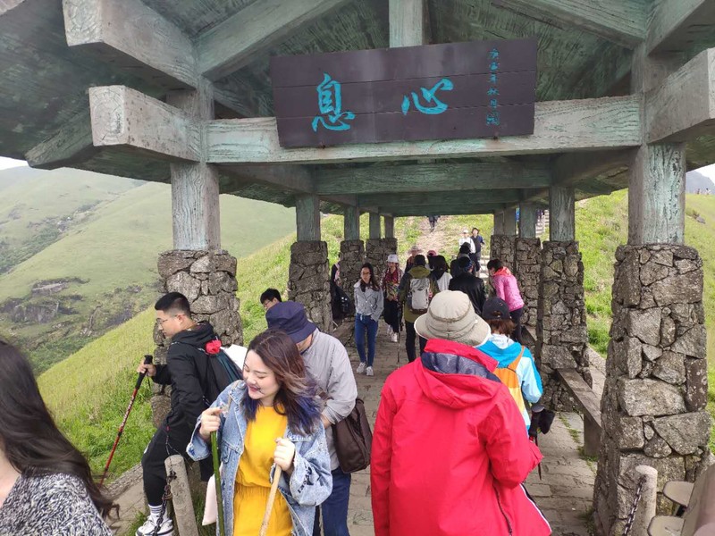 我们先行部队到达绝望坡起点,由于今天的路程太远,五一去武功山的队伍很多,迫不得已我们队伍被分成的两个小队,我们到达绝望坡起点后面队伍到这里还需要至少一个小时的路程,先行队就先开始爬山去了