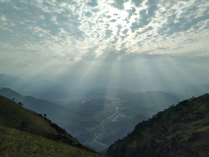 之后继续爬登,三个小时后所有人成功登上山脊,看到眼前这般美景大家就会前面多虐都值得,武功山的松树很美很有特点,好多都是稀疏的几棵长在山脊上,给壮阔的高山草甸增添了一些点缀。
