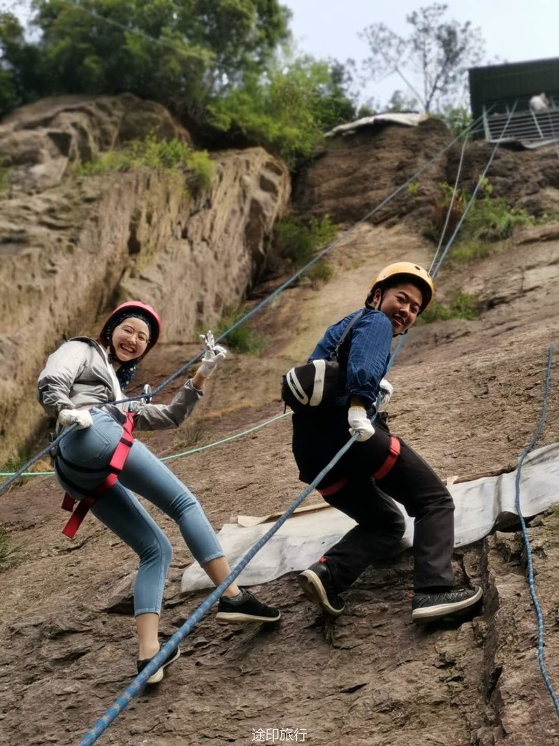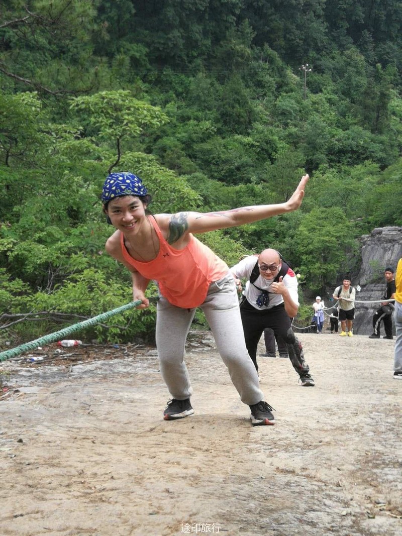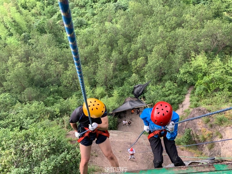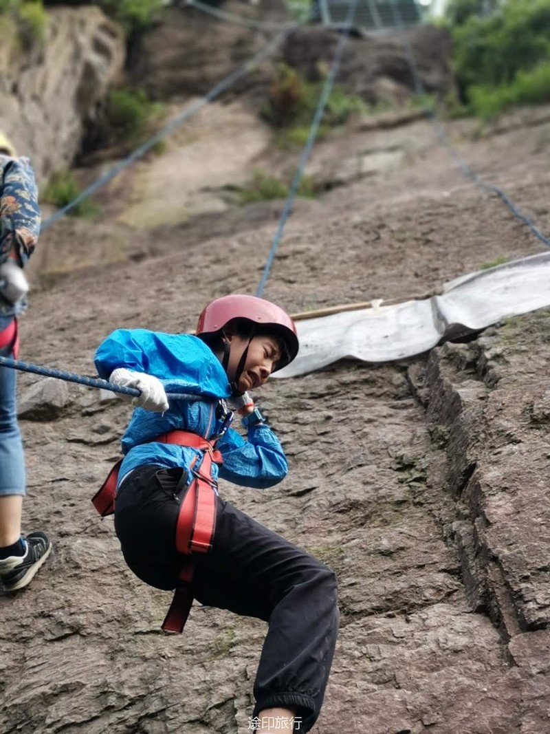 哇哇哇!端午节小长假开始啦!也就意味着我们的冒险故事也就此展开了...... 我们全员于6月7号早上七点四十分上车集合完毕,开始向着我们这次活动的目的地桐庐纪龙山前进。在车上的自我介绍环节中,有三个小男孩和三个小女孩最让我印象深刻。轮到小女孩介绍的时候,她们三个一起来到车厢前面,配合完美的自我介绍(在第二天,其中一个女孩告诉我 ,她们的组合叫“江小白”)并且还合唱了一首英文歌,气氛被推得相当热烈。还以为端午节小长假高速会堵车,但幸运的是大巴一路很顺利,很快在中午一点左右到达目的地的农家吃午饭,午饭被大家迅速光盘,看来大家可能是真的饿了吧,哈哈哈! 休息了一会之后,有一个是从小在部队大院里长大的大叔,操着一口不是东北人的东北话,开始催促我们赶紧出发(可能是从小军事化管理的原因吧,时间概念真的超强)。紧接着我们重新上车,车程十分钟左右就到了我们即将露营的地点,并且带大家分好了帐篷。 在去速降之前,我们先听工作人员演示了一下如何速降,以及怎么速降,并且部分人还在农家提前拿到了装备。OK,还等什么,速降台我们来啦!!这是我第二次速降,心里非常淡定,依然还是站在降台的边缘找最好的角度给大伙们拍照,虽然大家比较紧张害怕,但是我们全员都成功下去了,没有一个人退缩。当然,有一个尖叫姐姐承包了我们一行人半年的笑点,这里我就不多说了,接下来请大家欣赏各位的千姿百态吧。