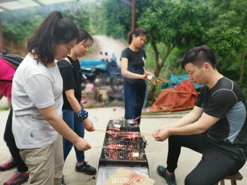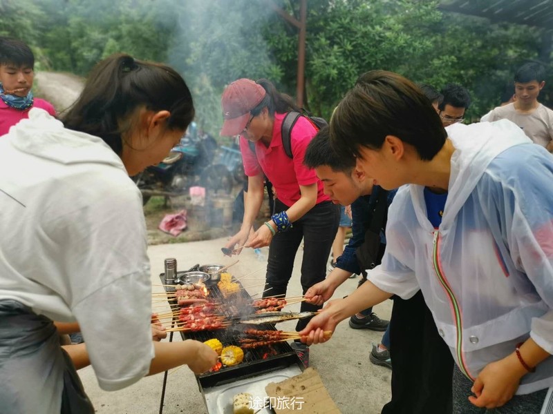 速降完毕之后,安排大家都回到了营地休息,在五点半左右,准备了一顿清粥小菜先垫垫肚子,而后开始了我们万众期待的烧烤和篝火晚会