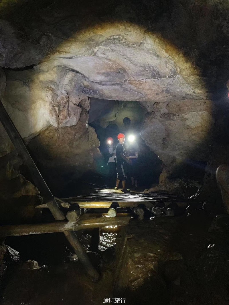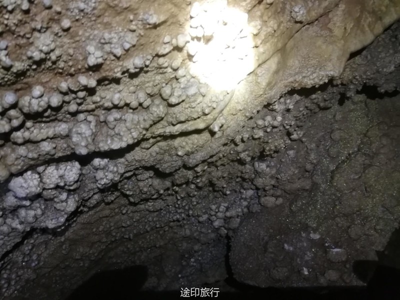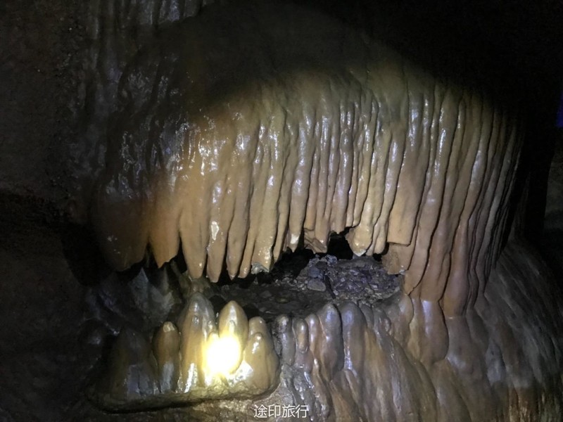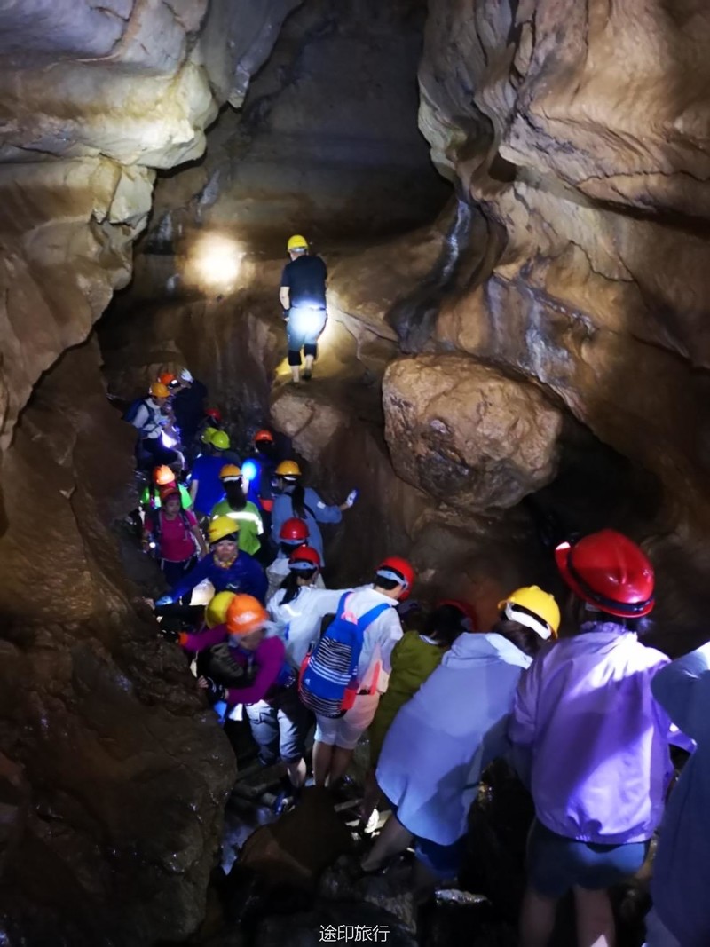 6月8日,第二天的行程开始了,美好的心情当然从一早开始啦。我们早上七点吃早饭,不到七点半我们大哥(以上提到过的军事化管理的的大叔)就开始要安排我们早点出发了。最终我们在七点半左右所有人都带好自己各自的行李,回到大巴车上。开始向金牛洞出发,几分钟车程,到达爬山的山脚,开始准备探洞。在我们大哥的带动下,所有人以非常快的速度到达了第一个洞口——金牛洞,洞里有一束光打下来非常漂亮,我还趁机偷了我们里面两个人民教师的美照,美爆了有木有!紧接着,我们继续一路向上,向我们中午吃饭的农家而去。在十点一刻左右,我们已经在农家换好军旅鞋出发探卧龙洞了,卧龙洞的水比较深,难度也比较大,所以需要大家换好鞋子,戴上安全冒和照明设备。卧龙洞里的钟乳石非常有特色,等下请继续欣赏照片。