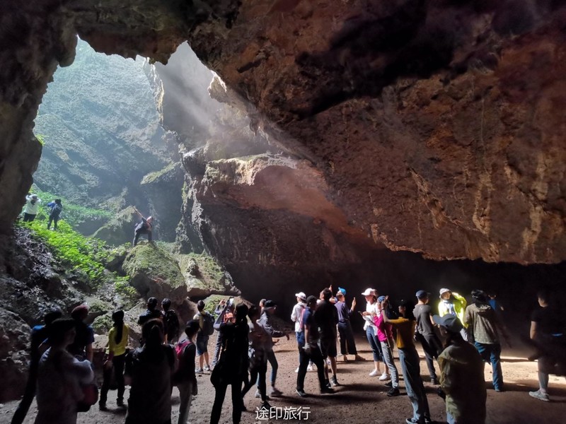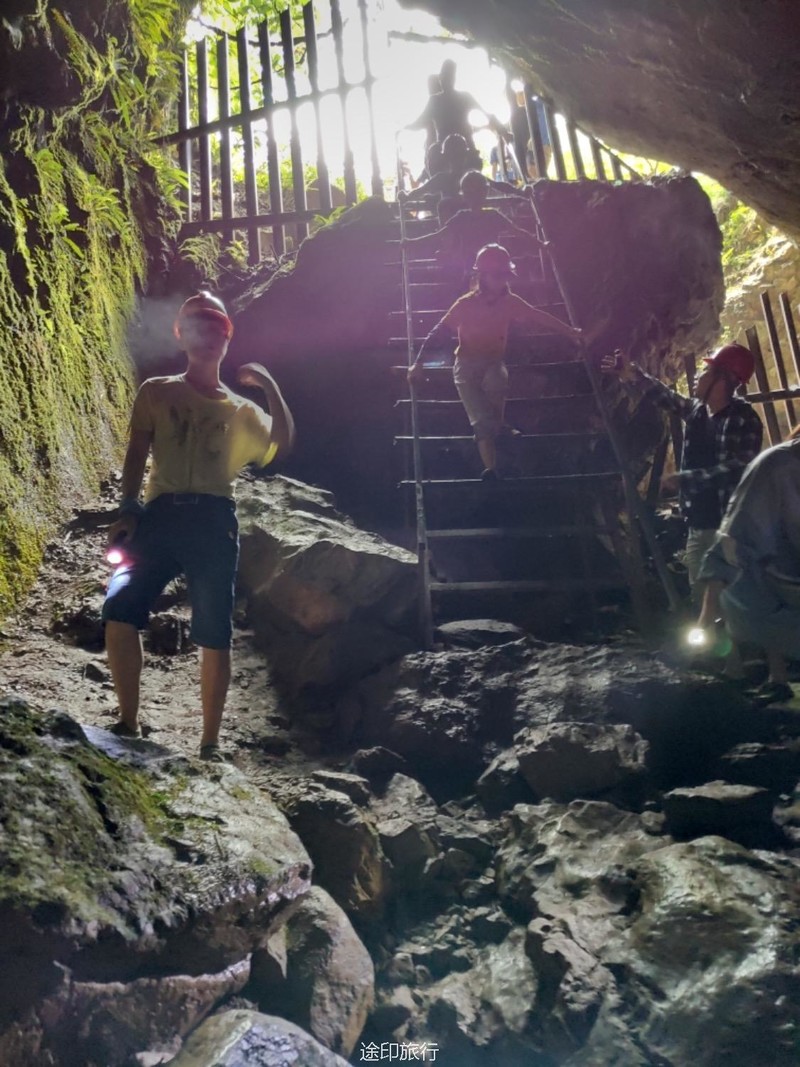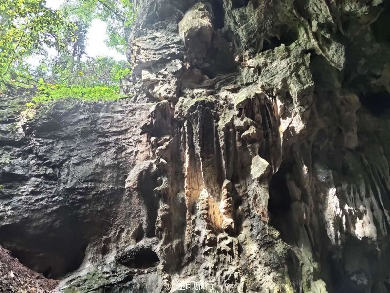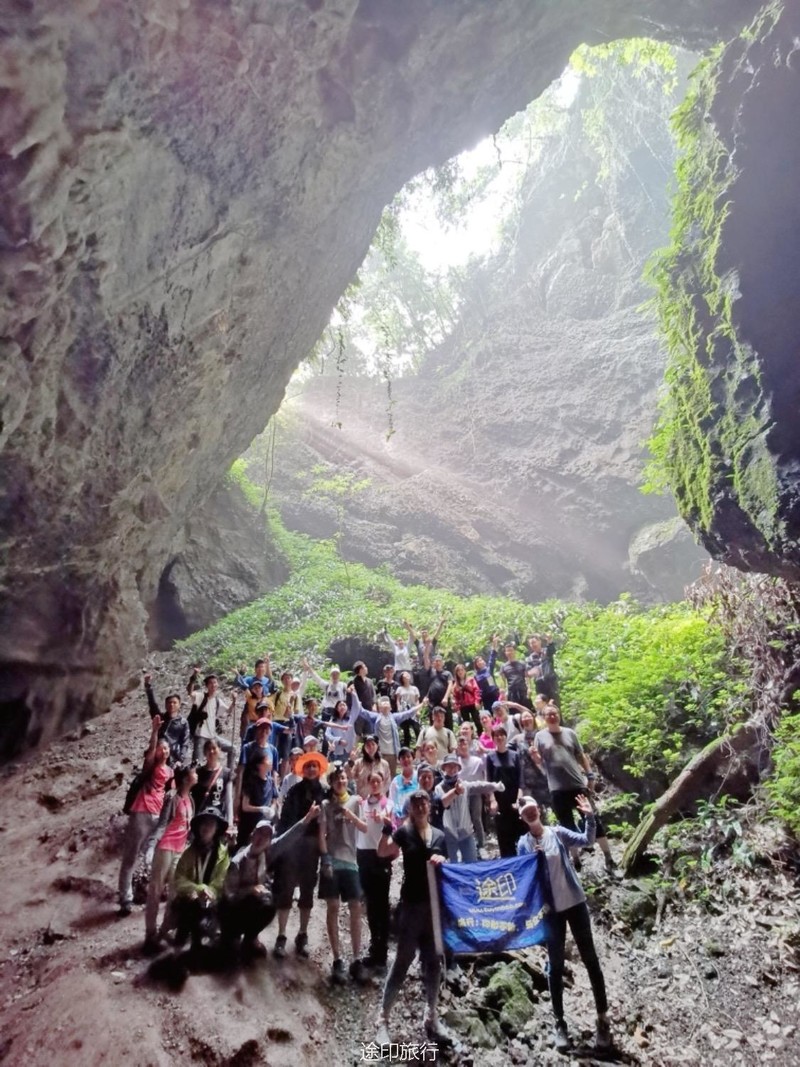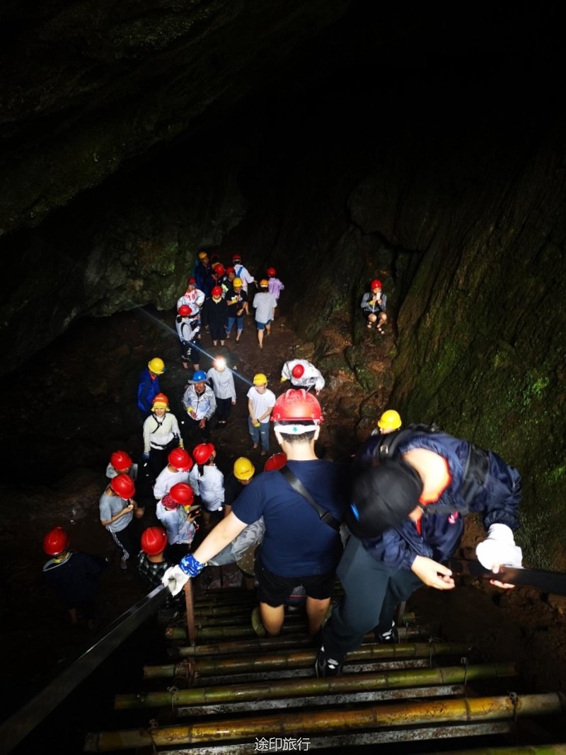 6月8日,第二天的行程开始了,美好的心情当然从一早开始啦。我们早上七点吃早饭,不到七点半我们大哥(以上提到过的军事化管理的的大叔)就开始要安排我们早点出发了。最终我们在七点半左右所有人都带好自己各自的行李,回到大巴车上。开始向金牛洞出发,几分钟车程,到达爬山的山脚,开始准备探洞。在我们大哥的带动下,所有人以非常快的速度到达了第一个洞口——金牛洞,洞里有一束光打下来非常漂亮,我还趁机偷了我们里面两个人民教师的美照,美爆了有木有!紧接着,我们继续一路向上,向我们中午吃饭的农家而去。在十点一刻左右,我们已经在农家换好军旅鞋出发探卧龙洞了,卧龙洞的水比较深,难度也比较大,所以需要大家换好鞋子,戴上安全冒和照明设备。卧龙洞里的钟乳石非常有特色,等下请继续欣赏照片。