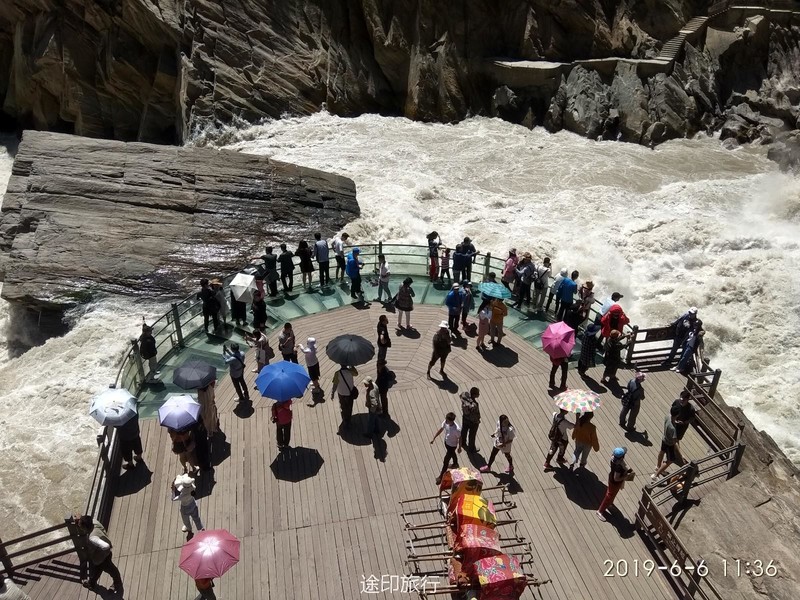 Day2  昨晚所有队员都到齐,今天是去了虎跳峡,从丽江乘车约一个小时,就到了上虎跳峡,由于是景区,到处都是人山人海,听老朱讲了《长江漂流》的故事,看那江水的奔腾,特别能让人内心宁静。(上虎跳峡也是因这个故事而闻名)