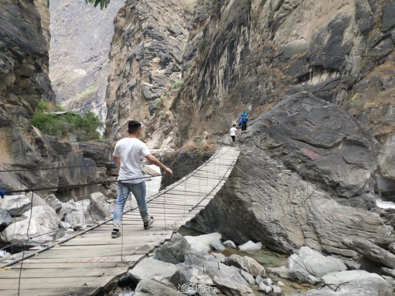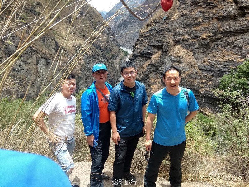 吃完中饭,我们一行(除李林有事外)其他5人就向中虎跳峡出发。经过一段崎岖的山路,到达中虎跳峡,风景不输上虎跳峡,但是游客更少(中虎跳峡不是景区,但由当地人自已开发,徒步爱好者偏爱的地方)。