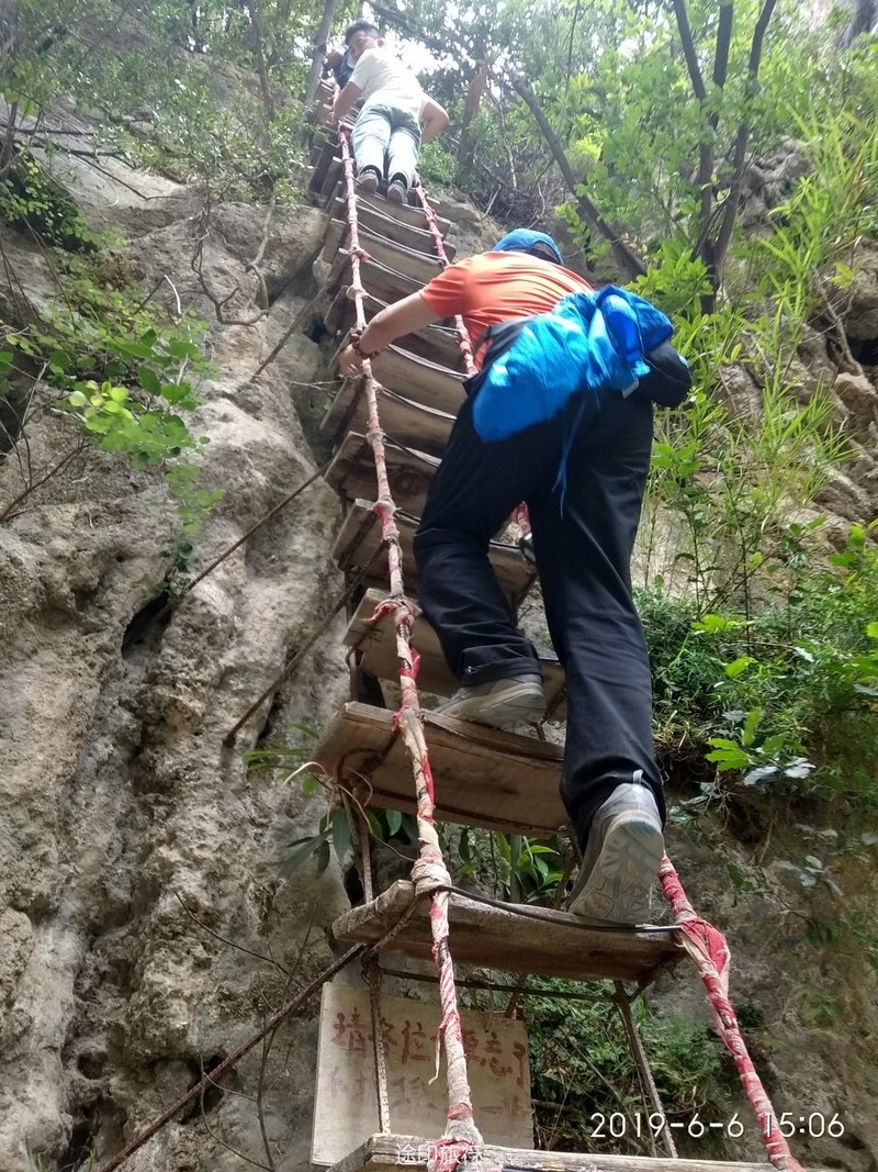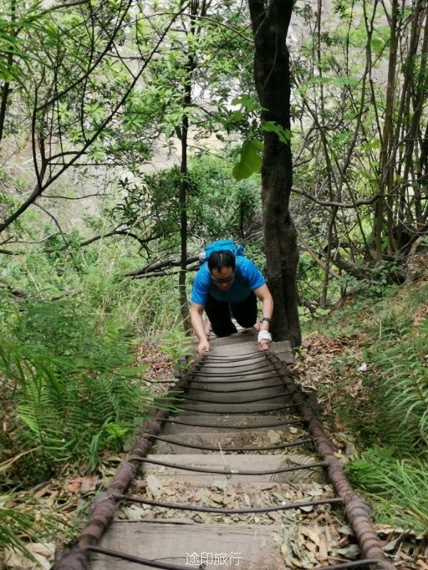 168级勇士崖梯,爬玩觉得腿有点发抖。最陡的地方,斜有70度。
