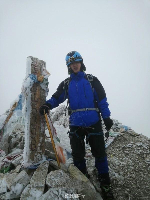 我们队伍中除了大神觉得天气不好,上面没有风景放弃登顶。老朱觉得有些高反,在海拔5200放弃登顶。另外两位美女也登顶成功,没有上传照片。9人7人登顶成功。上山途中,队友抓拍的我。