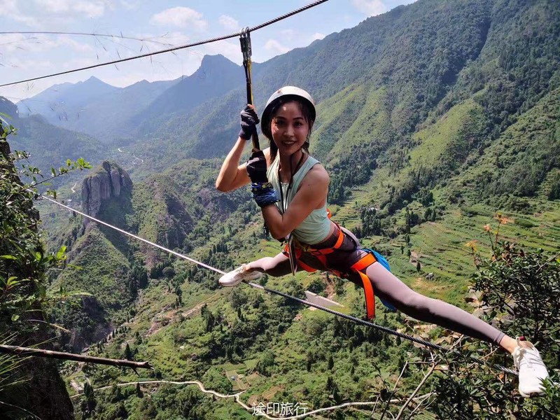 雁荡山飞拉达位于雁荡山脉的龙西乡的沓屏峰。沓屏峰远看像一顶冠状的岩峰,当地人称为“百丈岩”。