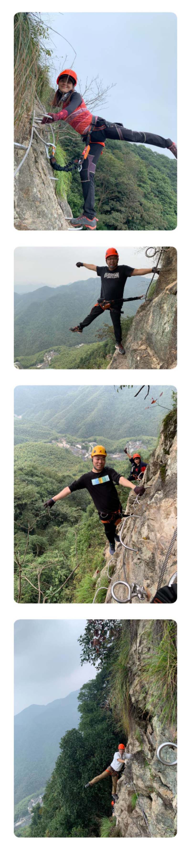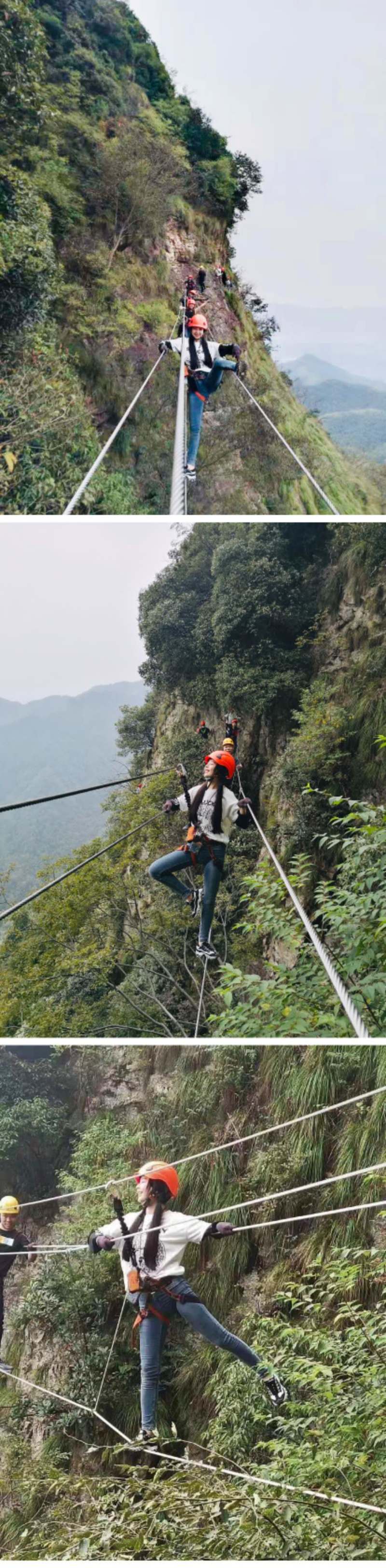 绍兴独家 铁道式攀登(飞拉达)长度到达550米,用时2-3小时 飞拉达指的是修建在岩壁上、利用铁索、脚蹬的辅助,进行峭壁攀爬的登山方式;索道的部件主要有扶手、梯级、缆索、脚蹬等。这些装置让没有攀岩能力的爬山者也能在陡峭的岩壁上行走,并且配备上专业攀岩装备。所以,就算没有经验,也可以进行游玩!