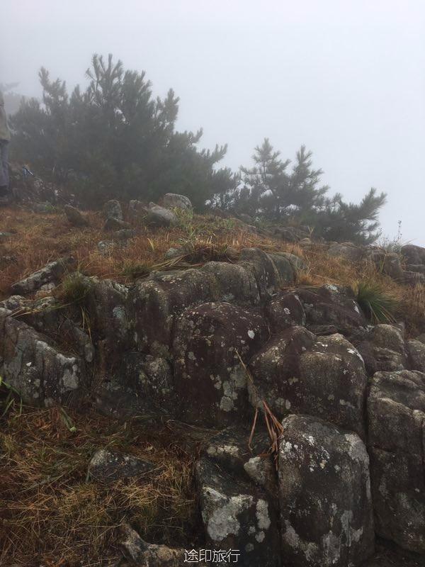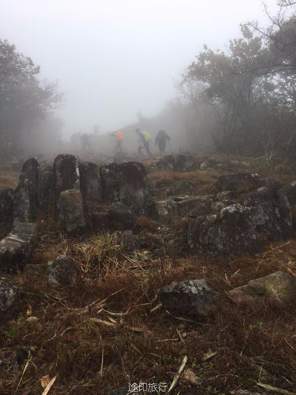 10月2日,天气阴,风力估计有4-5级,大雾。6:00我就走在挑战七尖的山路上,一路上大雾,几乎看不到什么景,只看到偶尔的一片蓝天,当你想拍下来时,他又被大雾给遮住了。