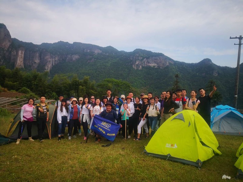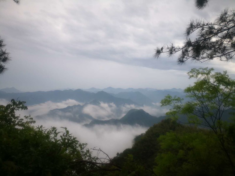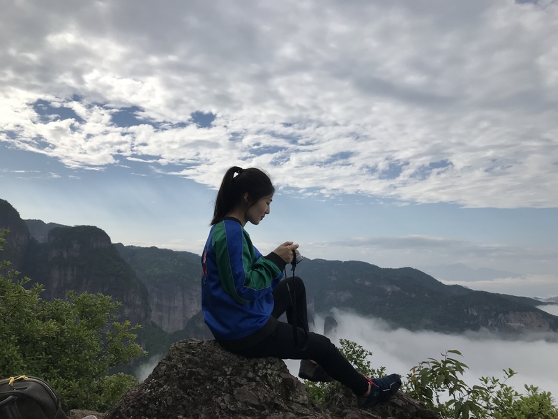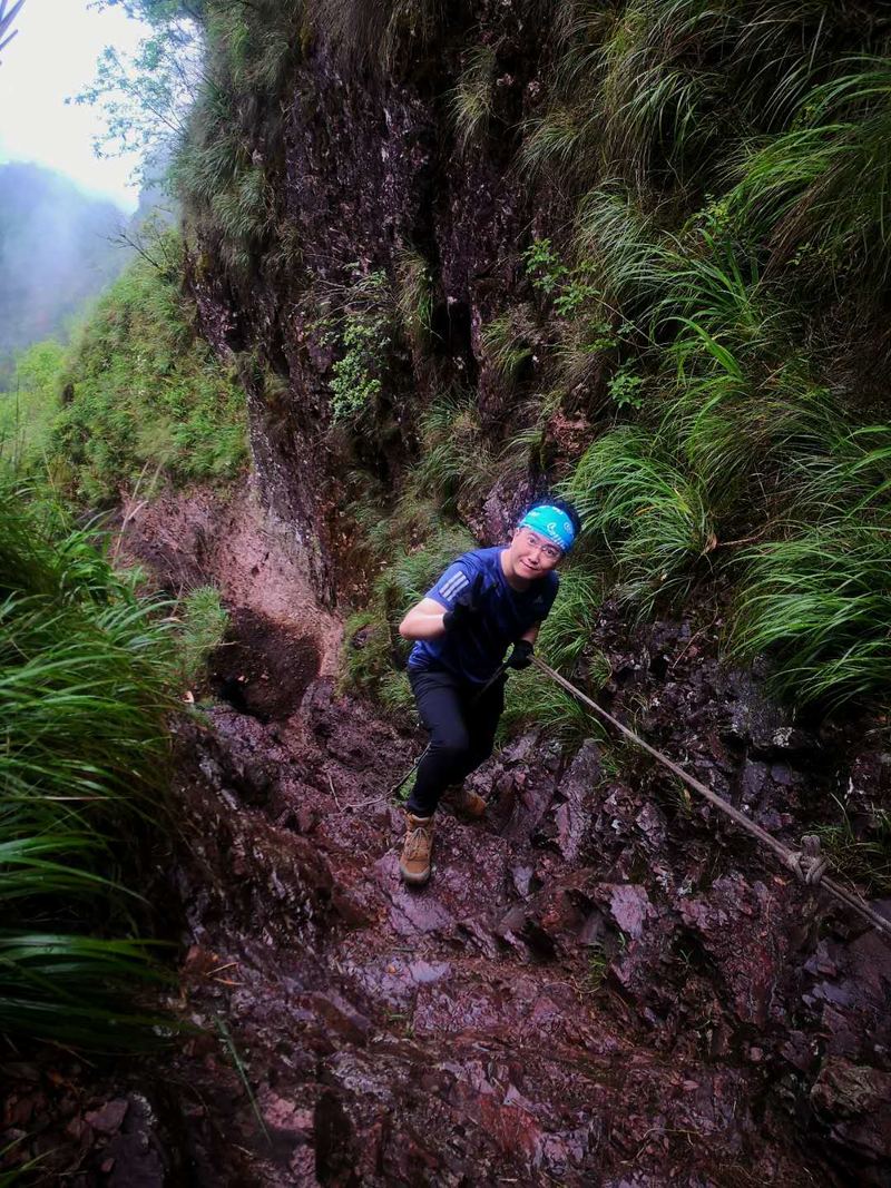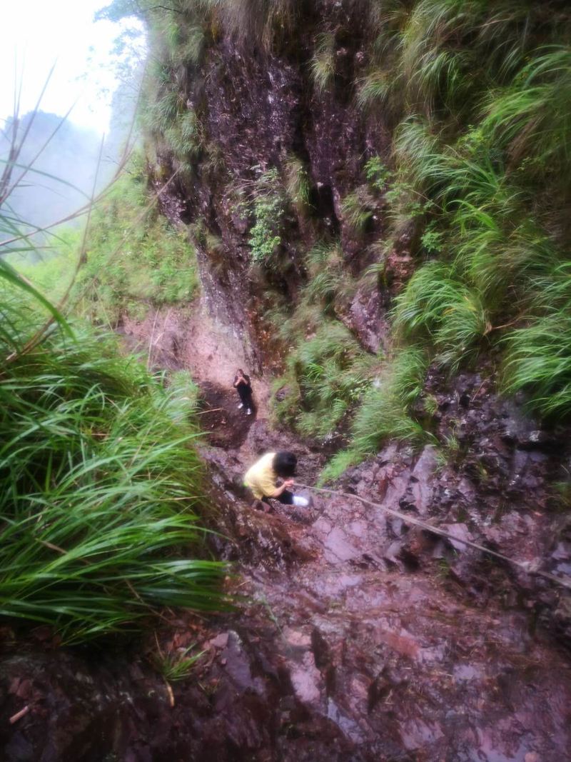 因为疫情的原因,一路上的大巴车很少,路上和服务区都没有往常那么拥挤,一路飞驰,直达入住地点。 一夜无话,第二天一早吃过早饭就开始爬山了。很久没有运动,爬起山来还有点累⊙﹏⊙。 中午到达上坪村,大家分配好行囊,扎好帐篷,就是来本次行程的经典路线了:攀登悬崖,俯瞰山川大地,山间的云海一览无余(由于刚刚下过雨,此次的云海特别美)