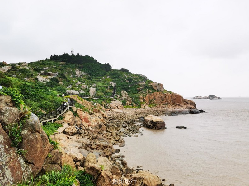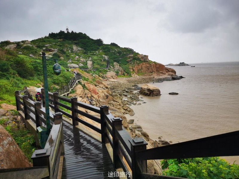 经过上次的大洋山岛环岛路线,这一次活动我们改进了路线,环半岛最精华部分加上小梅山景区,这样所体验看的美景更多一些。6月21号,一行20多人出发啦,预报有中雨,但也阻挡不了大家爱玩的热情,比较幸运前半段没下,后半段下起了雷阵雨,不过没下多久久停了,中午11点多登上岛以后,大家到镇子上找了家口碑不错的餐厅一起AA海鲜大餐,餐后就出发徒步,漫步环岛路,滩涂捉螃蟹,很是有趣味