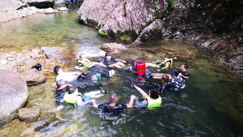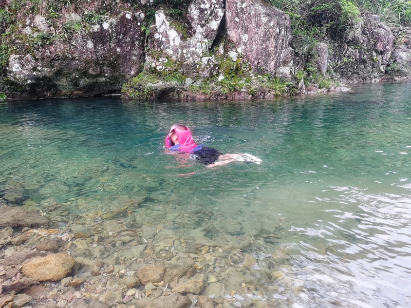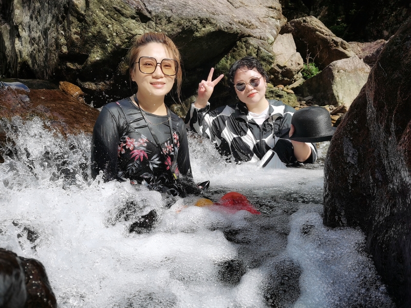 周五晚上,小伙伴们,各种从四方赶来集合,8点顺利从外环开启了旅行的列车, 凌晨一点到达前坑村,各自分配好住宿,收拾好行李安然入睡。由于正处雨季,山谷里水势变化很快,庆幸的是今天刚好晴天,所以一大早吃过早饭就出发去溯溪 山间的溪水非常清澈,大家说说笑笑,沿着溪水一路向上,遇到深水池大家就开始放开手脚,泼水,游泳,潜水,跳水,抓拍,摆pos,总之怎么开心怎么来