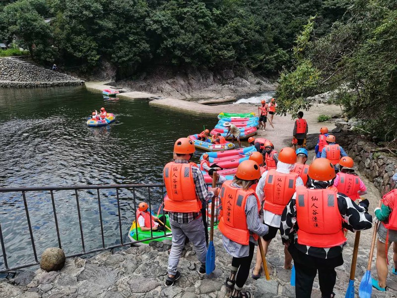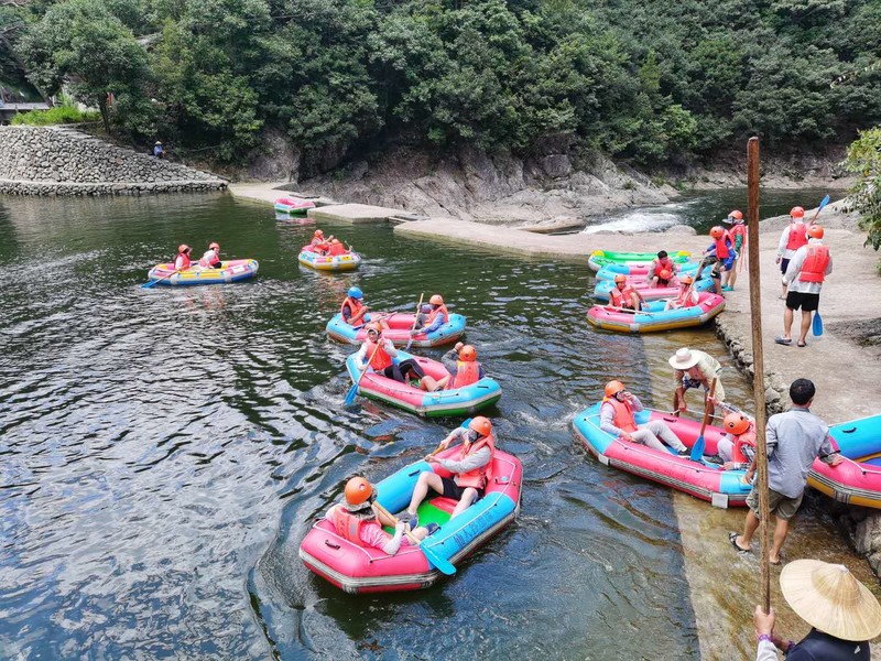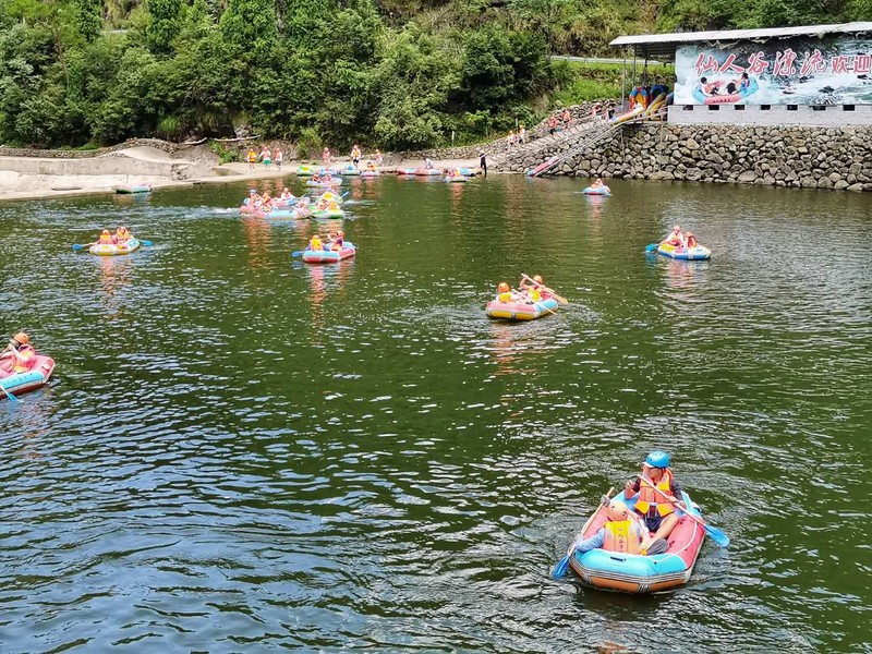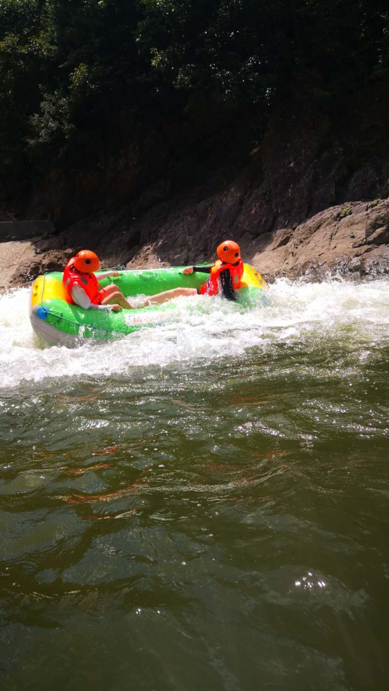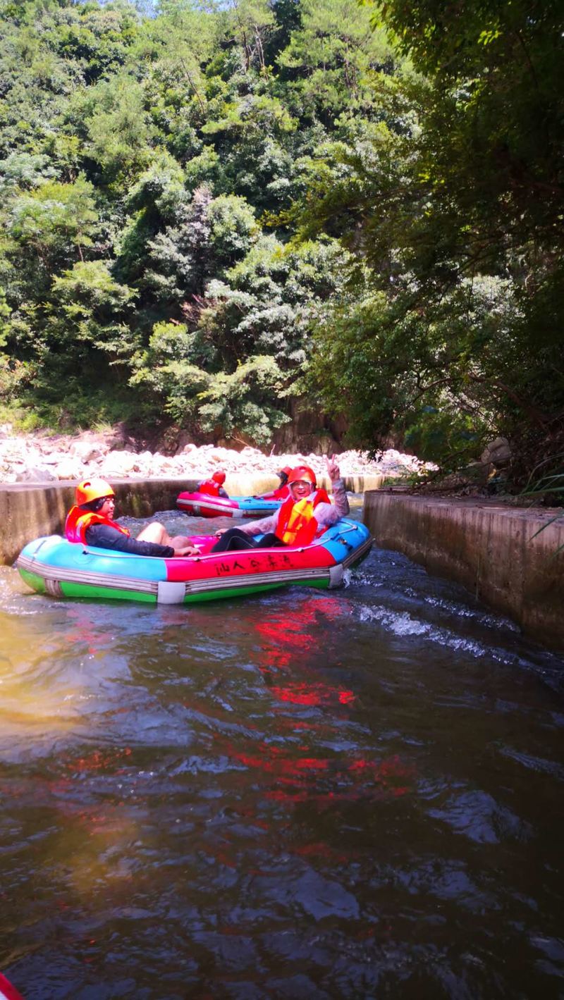 第三天就到了漂流的时间了,吃过早饭,驱车前往漂流起点,由于比较早我们第一波到了漂流的起点,山上的水还没有下来,大家伙已经迫不及待的想要下水了,坐在竹皮艇上,飘荡在湖中心上,泼水划桨,好不惬意