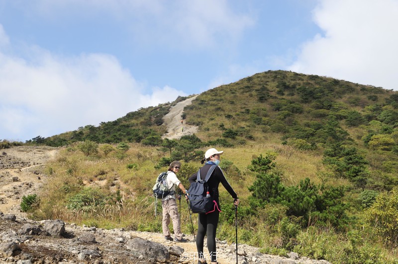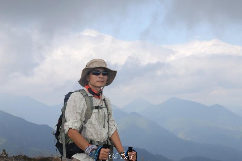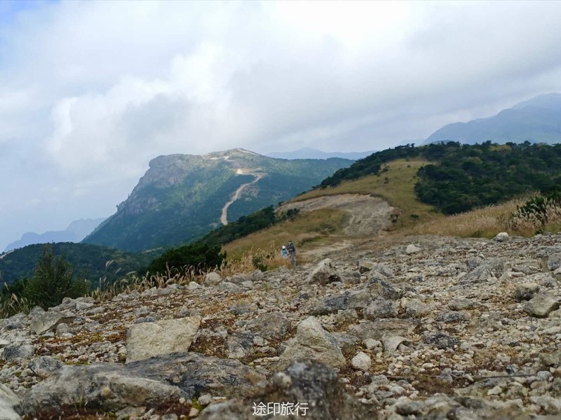 绵延的防火带,后面那个山头,就是刚刚走过的烧香岩。天空时而蓝天白云,时而乌云满天,让我们不能停下太久。