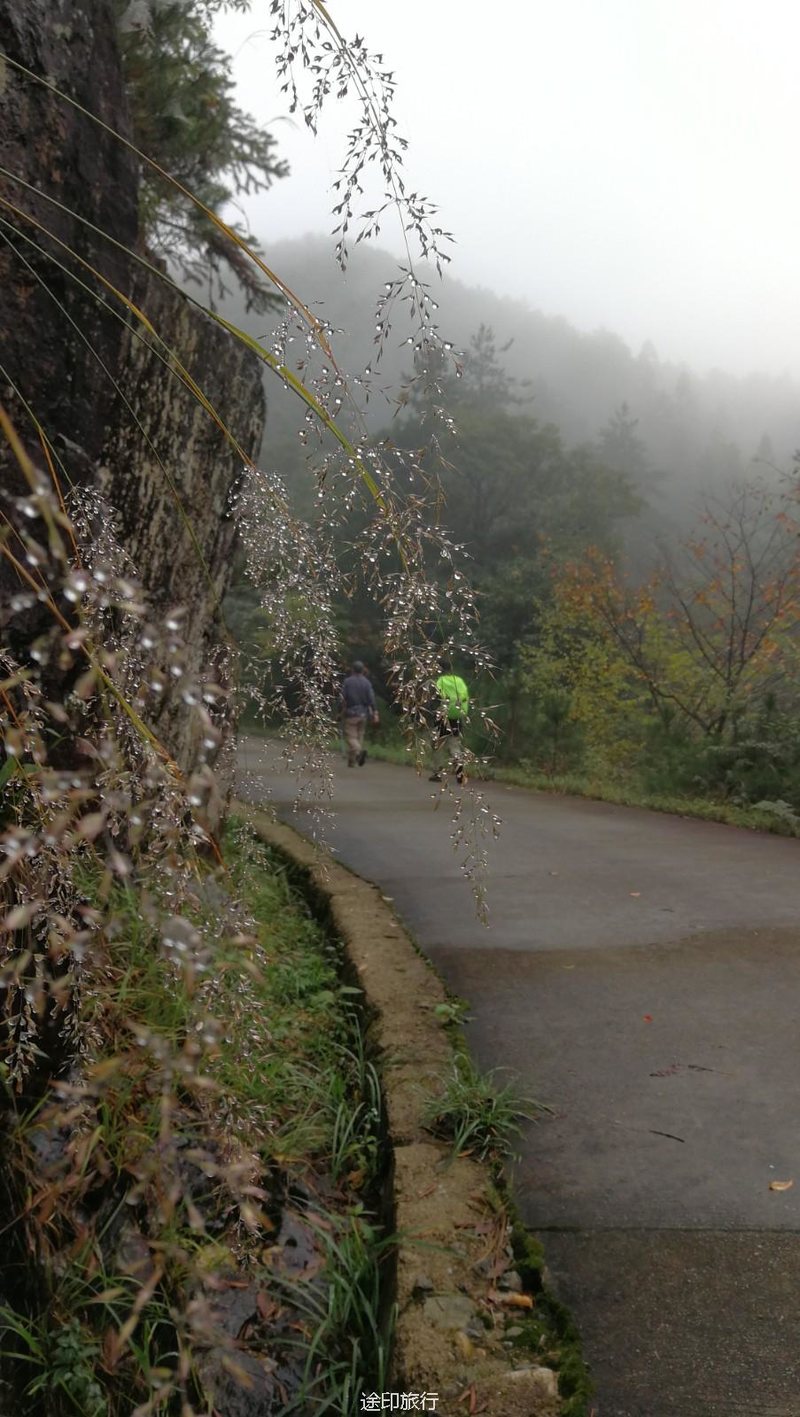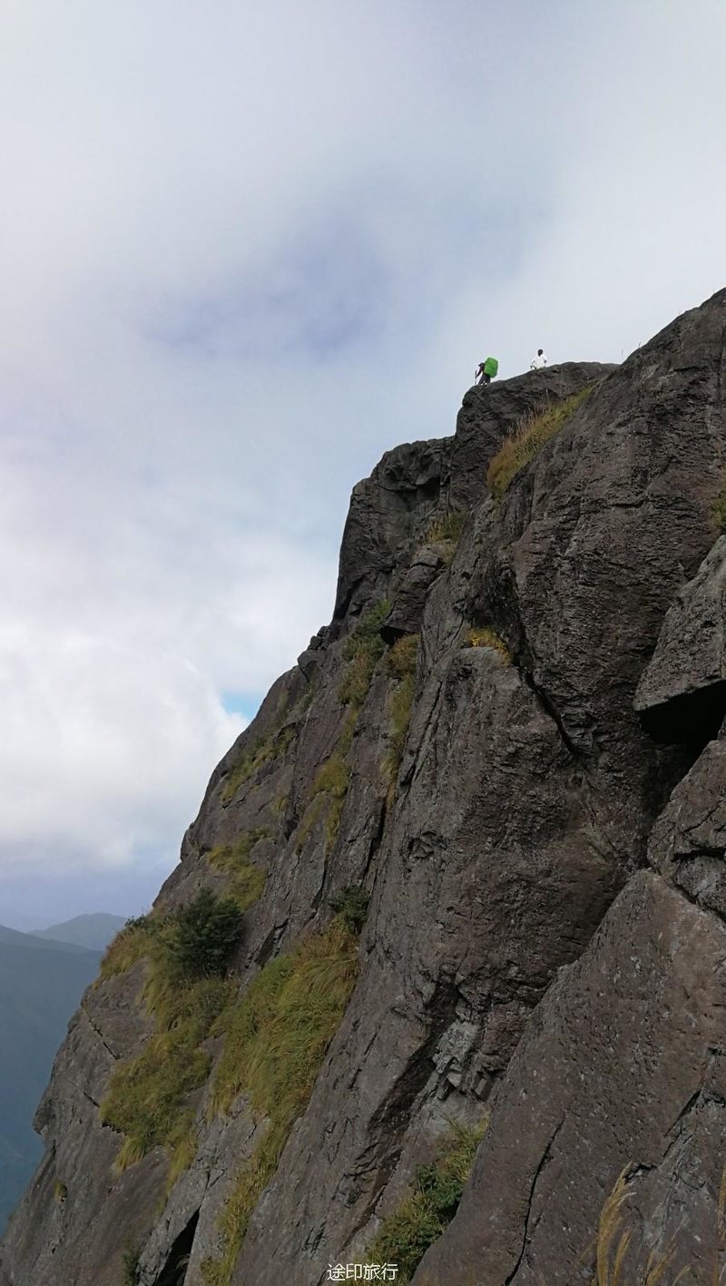 由于千八第一天的路程是最长,也是最累的一天。回到农家吃完饭,大家早早就休息了,一夜无话。10月4日我们出发去烧香岩。在山上没觉得有多高,到山下看山上的人。
