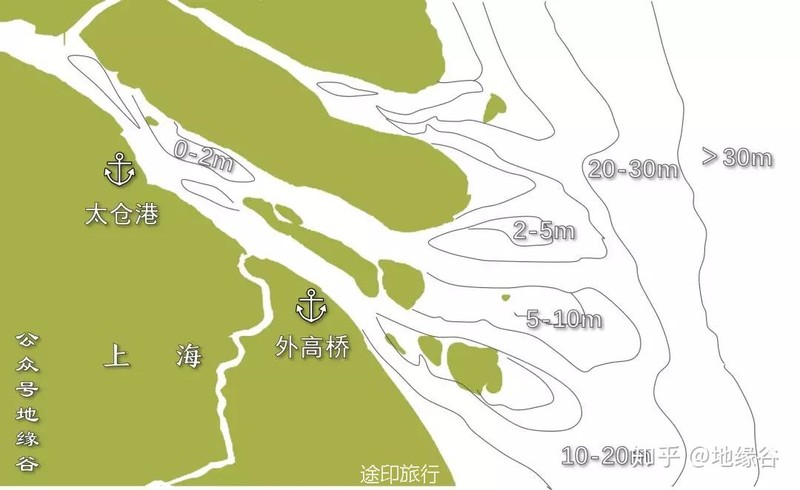 ▲ 长江入海口水深情况。网图|公众号地缘谷