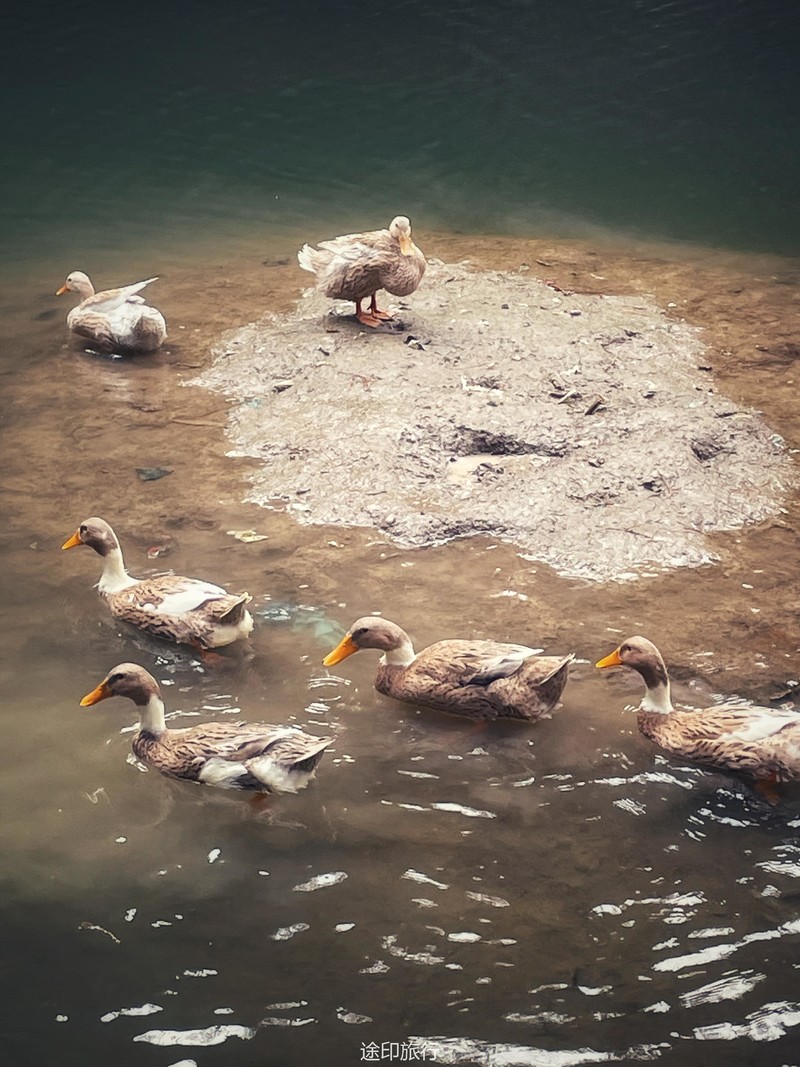 我们在河边休息,大家拿出各自的路餐和美味,与身边的新老朋友分享。不远处的鸭子和树林,构成一派和谐景象,让人不禁心生欢喜。