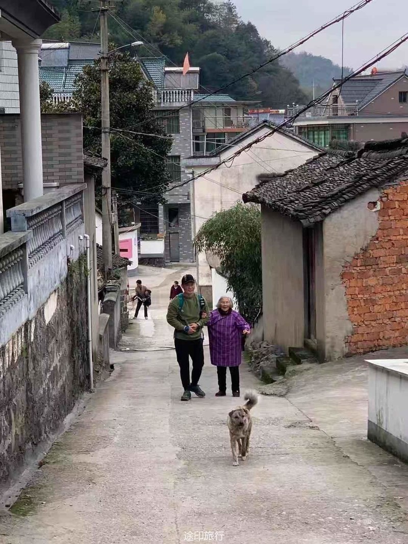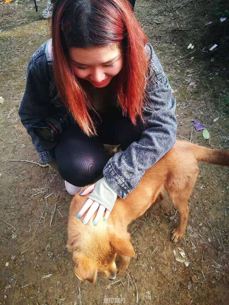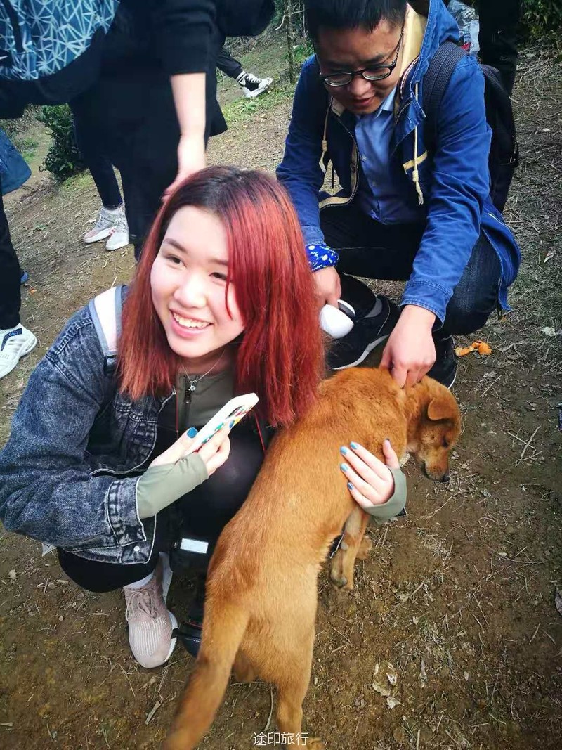 快下山的路段,领队跑前跑后的帮助大家安全下山,遇到恶犬就搬来救兵,让大家安心通过。